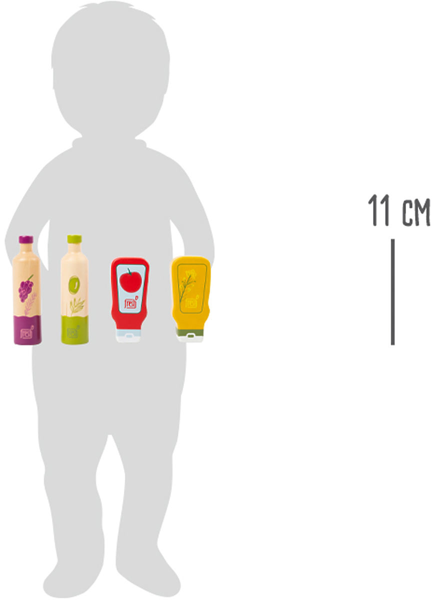 Les épices parfaites pour la cuisine des enfants ! Ce set de jeu comprend des bouteilles en bois de qualité dans les couleurs typiques de chaque produit. Grâce aux illustrations distinctives sur les bouteilles, l'enfant peut facilement reconnaître leur contenu. Le set contient du vinaigre, de l'huile, du ketchup et de la moutarde. Principales caractéristiques : l'ensemble comprend 4 pièces, favorise l'imagination et le jeu de rôle.