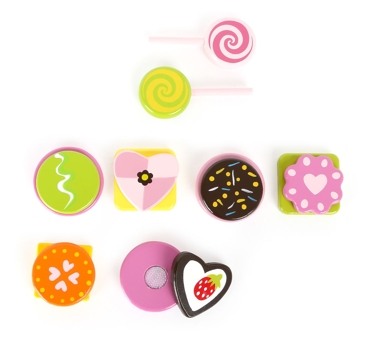 Qui peut résister à ces friandises ? Cette sélection colorée de douceurs fabriquées en bois certifié FSC® à 100 %, avec des sucettes, des biscuits et des pralines, est un véritable accroche-regard sur la table basse. Séparation par velcro. Grâce aux velcros, les délices peuvent être assemblés encore et encore. Cet ensemble de jeu est un excellent complément à la cuisine pour enfants. Qui peut résister à ces chocolats ? Principales caractéristiques : développe la motricité fine des enfants fabriqué en bois 100 % FSC La marque et le certificat FSC® (Forest Stewardship Council) garantissent que le bois utilisé pour fabriquer le produit n'a pas été exploité illégalement et provient de forêts gérées de manière durable ou proche de la nature, où des exigences environnementales et sociales strictes sont respectées. La marque FSC® sur le produit signifie qu'en achetant, vous contribuez à protéger les forêts et à soutenir une gestion durable, responsable ou proche de la nature, grâce à laquelle nos forêts sont plus stables, plus saines, ont une composition d'espèces naturelle et résistent mieux aux conséquences négatives des changements climatiques.