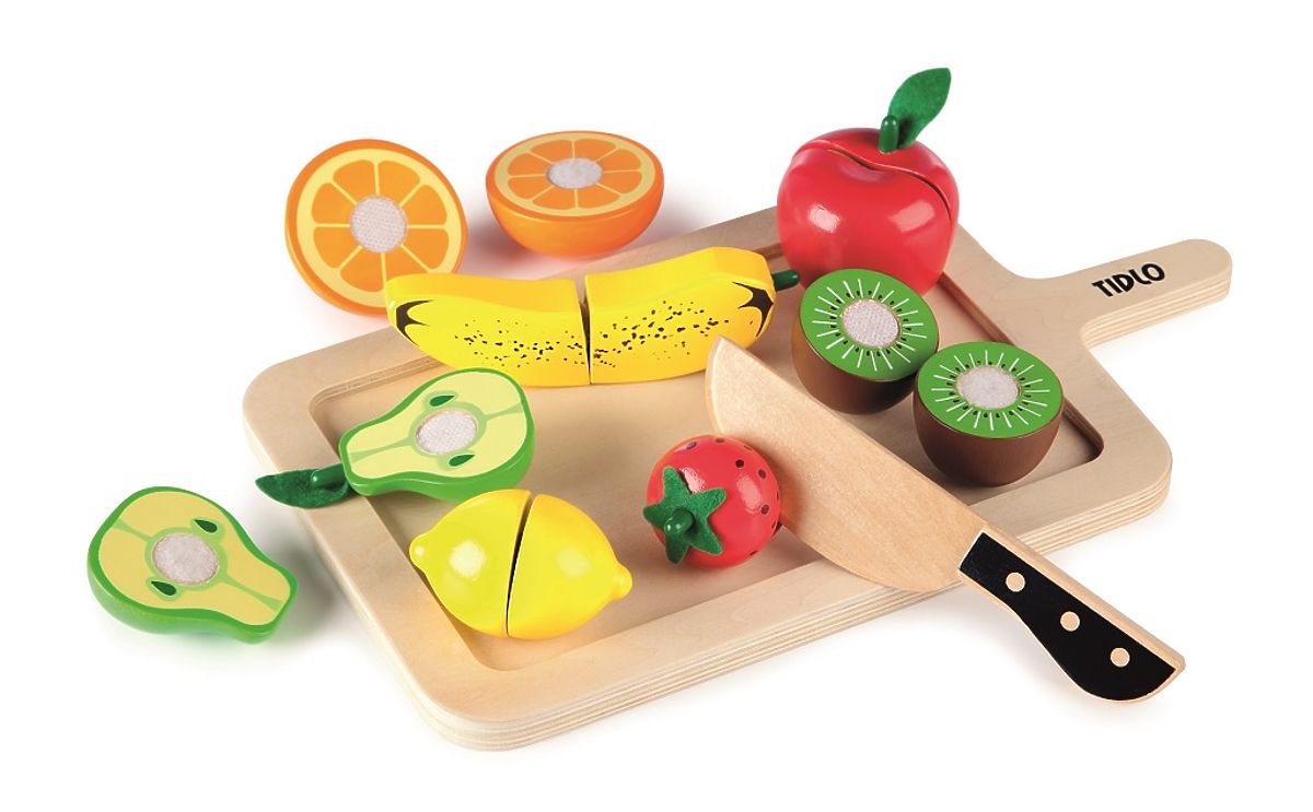 Respectez-vous la portion de 5 fruits par jour ? Ces fruits dodus sont le jouet idéal pour un jeu imaginatif. Les fruits sont attachés ensemble par des morceaux de velcro, et le paquet comprend également une planche en bois et un couteau, permettant aux enfants de couper les fruits colorés sur la planche. Le set comprend : banane, orange, poire, citron, kiwi, fraise et pomme. Ce set détaillé est adapté aux jeunes cuisiniers ou commerçants. Un excellent moyen d'enseigner aux enfants la sécurité en cuisine et l'importance d'une alimentation saine et équilibrée. Favorise le jeu créatif et imaginatif. Fabriqué à partir de matériaux de qualité provenant de sources responsables. Conforme à la norme de sécurité européenne. Principales caractéristiques : les fruits sont attachés ensemble par des morceaux de velcro, set détaillé, favorise le jeu créatif et imaginatif.