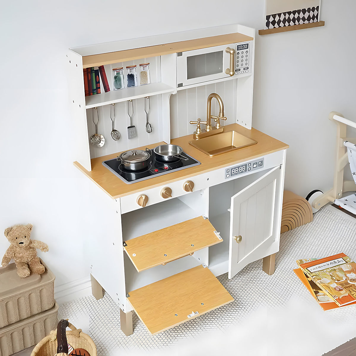 Cuisine en bois pour enfants avec sons et LED, 7 accessoires inclus. .. plus