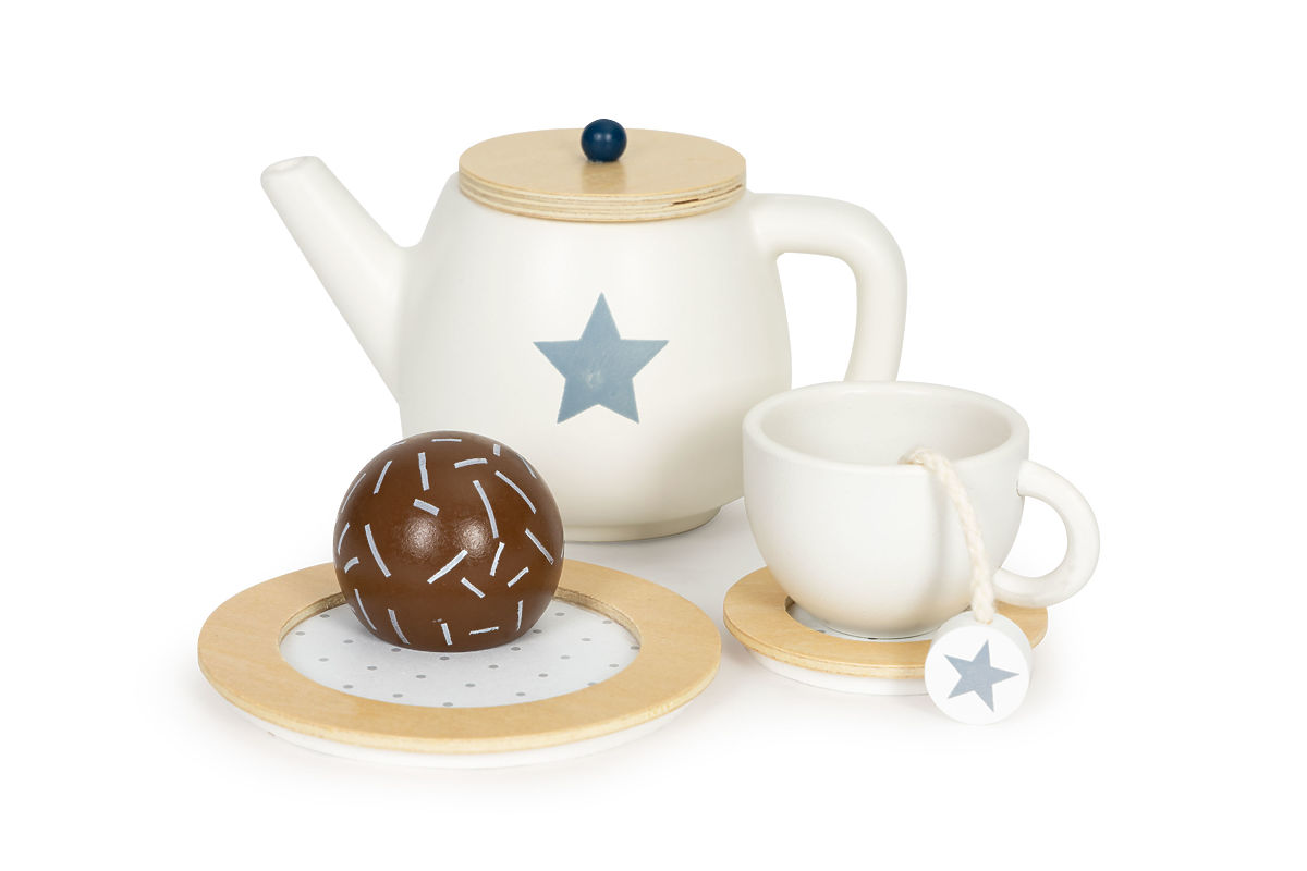 Banaby.fr » Jouets / Cuisines enfant / En bois cuisines / Ensemble de thé en bois avec théière et tasses 17 pièces ECOTOYS