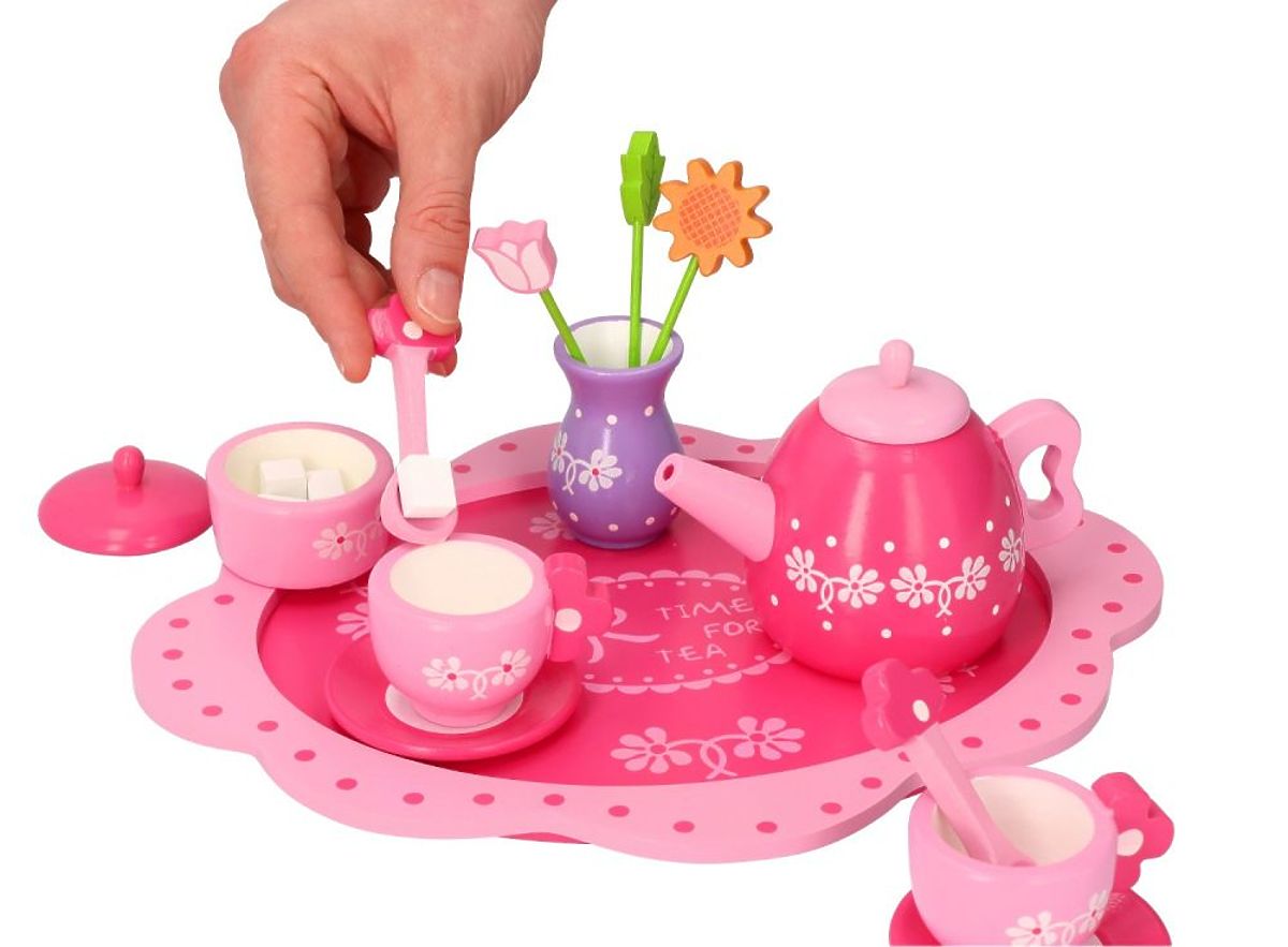 Un superbe ensemble de thé en bois offrira aux enfants de nombreuses heures de divertissement incroyable. L'ensemble de thé est idéal pour un pique-nique en plein air, mais aussi pour jouer dans la chambre d'une petite demoiselle. Les morceaux de sucre dans le sucrier, les tasses et la théière feront que chaque fille se sentira comme une véritable dame organisant une réception. L'ensemble complet peut être facilement transporté sur un plateau en bois.