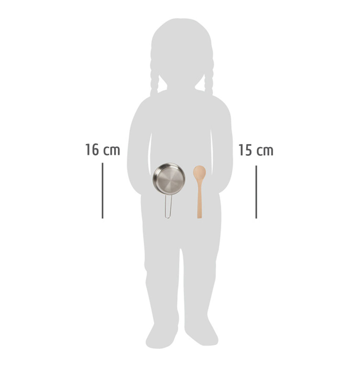 Un ensemble de cuisine complet composé d'une casserole avec couvercle, d'une poêle, d'un fouet, d'une spatule et d'une cuillère en bois. Inclus également un tablier pour enfant, un dessous de plat et une manique en textile. Couvercle amovible pour un jeu réaliste. La vaisselle et les ustensiles de cuisine sont de taille adaptée aux enfants. Tablier avec une grande poche poitrine pour ranger les ustensiles de cuisine. Un complément parfait pour une cuisine d'enfant. Encourage le jeu de rôle imaginatif. Principales caractéristiques : Design à la mode Encourage l'imagination des enfants