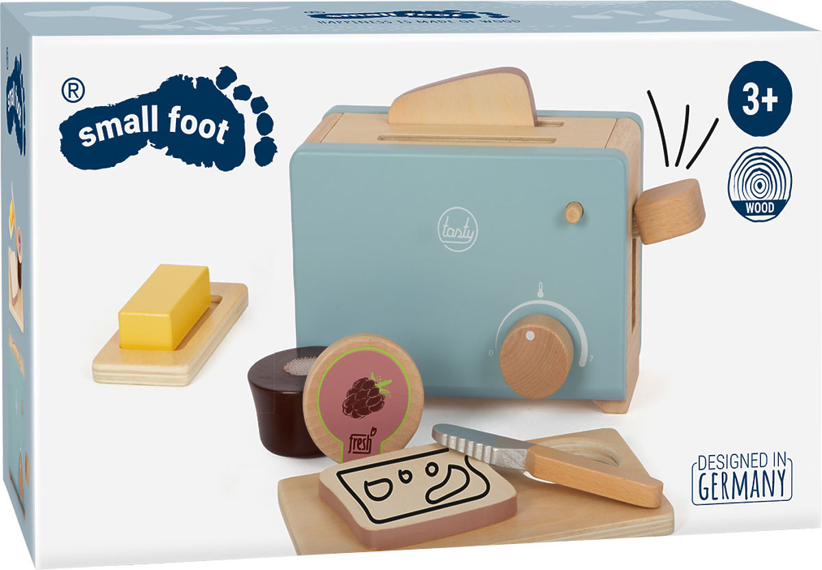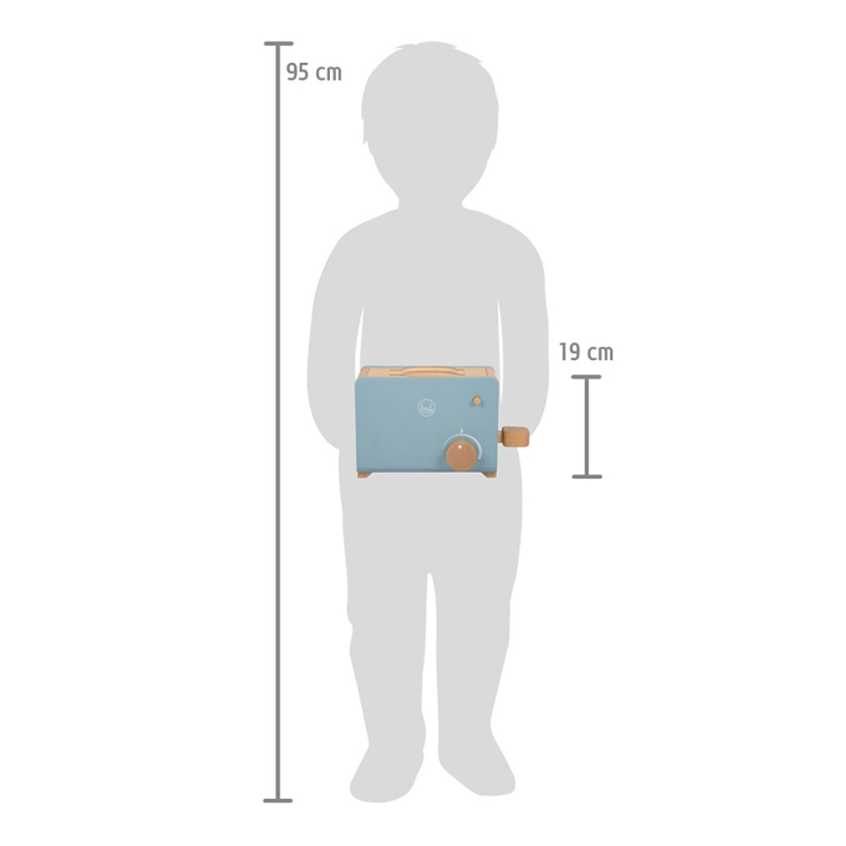 Avec ce grille-pain et ses accessoires, chaque petit-déjeuner préparé dans la cuisine pour enfants sera un succès ! Il dispose d'une fonction de saut et d'un design délicat en bleu fumé et blanc, le jouet contient également beaucoup de bois naturel. Parmi les nombreux accessoires, vous trouverez des tranches de pain grillé, un couteau, du beurre, de la confiture, ce qui aide à un jeu réaliste ! Le grille-pain a des boutons rotatifs et mobiles, un levier. Insérez les tranches de pain dans le grille-pain à l'aide du grand levier sur le côté, et retirez-les de la même manière. Avec le bouton rotatif cliquable, les enfants peuvent régler la température. La planche à petit-déjeuner peut être accrochée grâce à un trou, ce qui prend moins de place lors du rangement. Cet ensemble a un design coloré compatible avec d'autres produits de la gamme Tasty de Small Foot, comme la cuisine en bois LE12216. Principales caractéristiques : grille-pain en bois avec fonction de saut nombreux accessoires – tranches de pain, couteau, planche, beurre, confiture bouton rotatif cliquable la confiture s'insère parfaitement dans le trou de la planche convient à d'autres produits de la gamme Tasty en jouant de manière imaginative, il entraîne les compétences quotidiennes et sociales