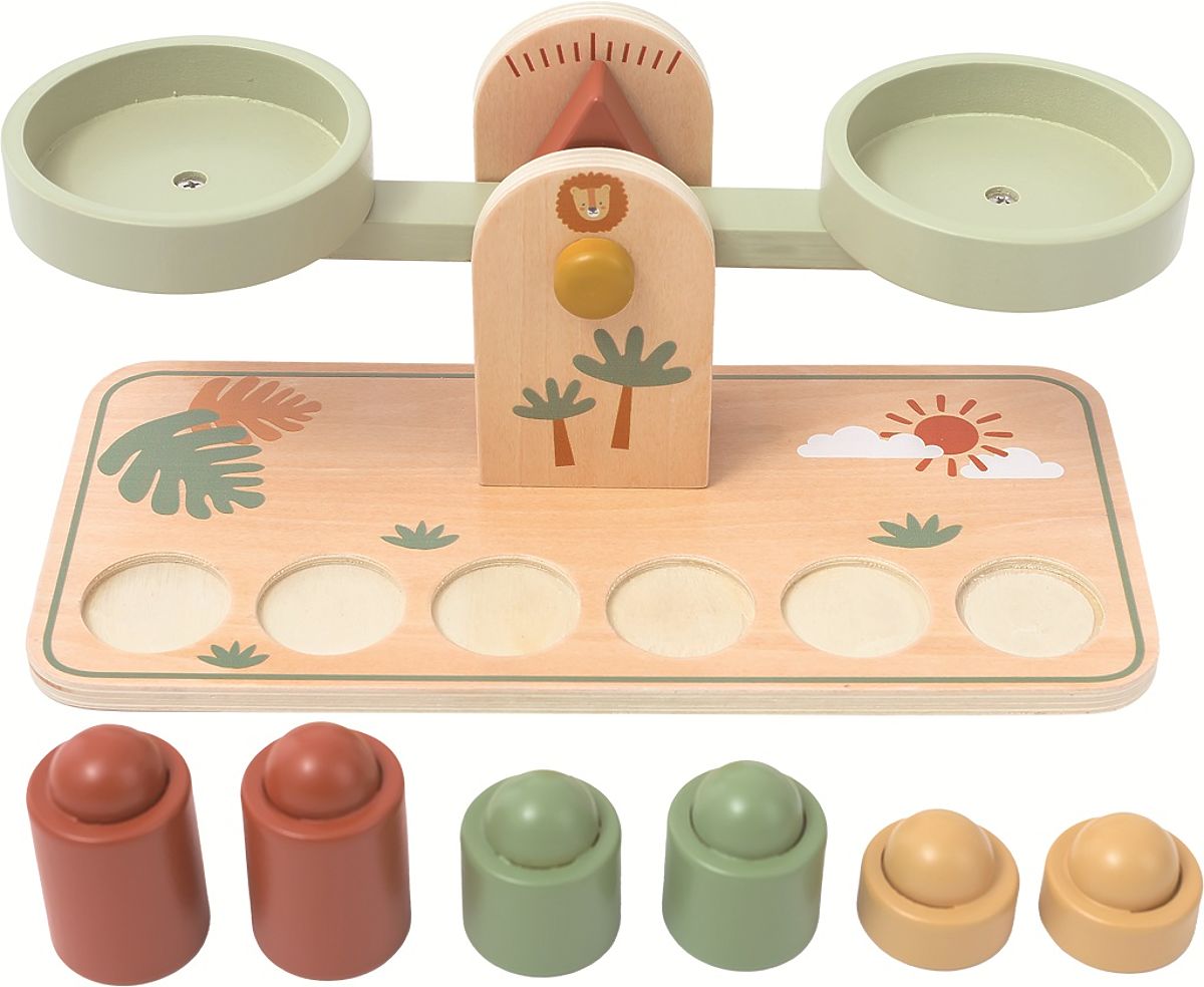 Balance à plateaux colorée pour enfants dans des tons pastel avec un motif safari, c'est un excellent outil pour une première découverte du monde de la pesée et de la comparaison. Inspirée par la pédagogie Montessori, elle favorise le développement de la pensée logique et de la motricité fine. Grâce à six poids de trois masses différentes (deux de chaque), les enfants apprennent à reconnaître les différences de poids et explorent par eux-mêmes quel objet est plus lourd ou plus léger. Est-ce que la peluche est plus lourde que la poupée ? Comparez les poids des jouets dans la chambre d'enfant ou des petits objets à la maison. La balance est idéale pour un apprentissage ludique à la maison et à la maternelle. Principales caractéristiques : 7 pièces, balance à plateaux avec 6 poids, développe la pensée logique et la motricité fine, inspirée par la pédagogie Montessori, apprentissage par le jeu, convient aux enfants à partir de 3 ans.