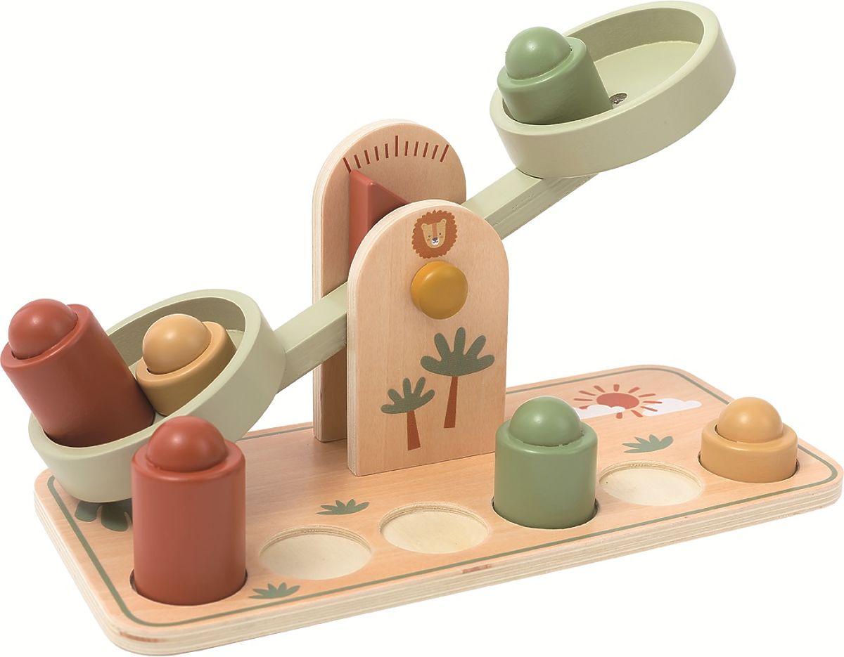 Balance à plateaux colorée pour enfants dans des tons pastel avec un motif safari, c'est un excellent outil pour une première découverte du monde de la pesée et .. plus