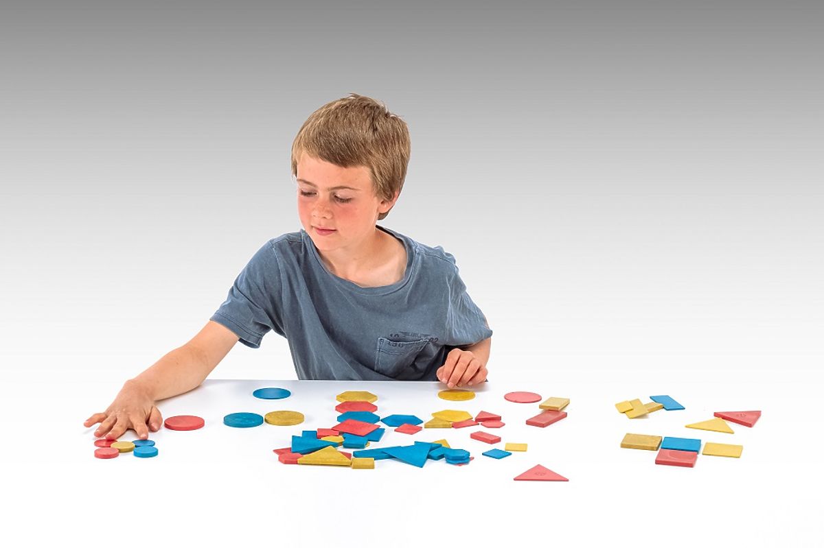 60 pièces de formes géométriques en bois fabriquées à partir de bois recyclé, servant à jouer et à apprendre les formes et les couleurs. 5 formes différentes (carré, triangle, rectangle, cercle, hexagone) en 2 tailles (grand carré 5,5x5,5 cm, petit carré 3,2x3,2 cm) en 3 couleurs (rouge, jaune et bleu) et en 2 épaisseurs (0,2 cm et 0,6 cm). Apprenez à nommer et à distinguer les formes géométriques. Créez des motifs identiques avec ces blocs logiques, reconnaissez-les par couleur, forme, taille ou épaisseur. Fabriqué à partir de matériaux 100 % recyclés, certifié PEFC et recyclable après utilisation. Principales caractéristiques : contient 60 pièces, 5 formes différentes, 2 tailles, 3 couleurs, 2 épaisseurs, premières expériences ludiques avec la géométrie, reconnaissance des formes et des couleurs, entraînement des compétences mnésiques, fabriqué en Allemagne.