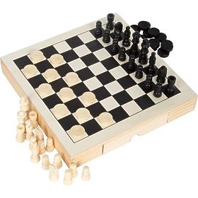 Hauteur des pièces d'échecs : de 3,5 à 6 cm ⌀ Diamètre des pièces pour dames : 2,5 cm Âge : 6+ Référence : 111208 Déclaration de conformité CE