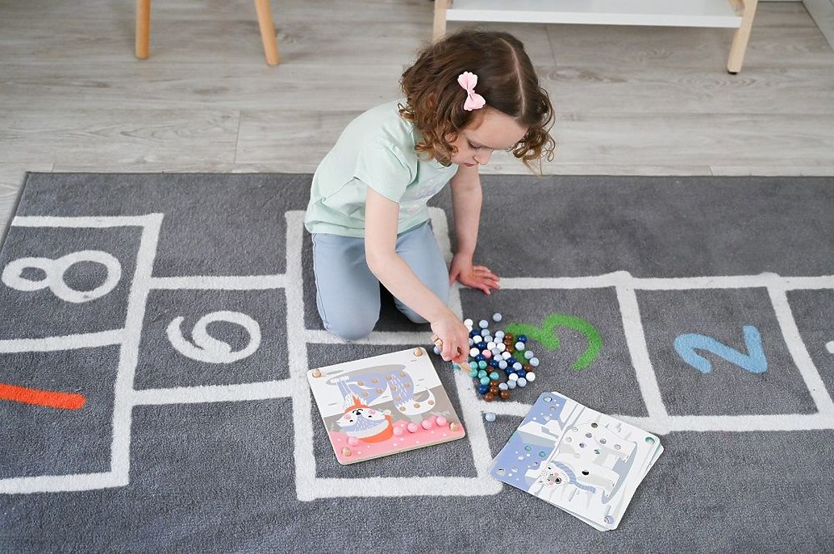 Vous pouvez attraper les billes directement du sac, ou simplement les renverser sur la table ou le sol et essayer de les attraper. Attention à ne pas les perdre ! Les billes aiment rebondir :) Le jeu avec le puzzle Attrape et Assemble présente de nombreux avantages :