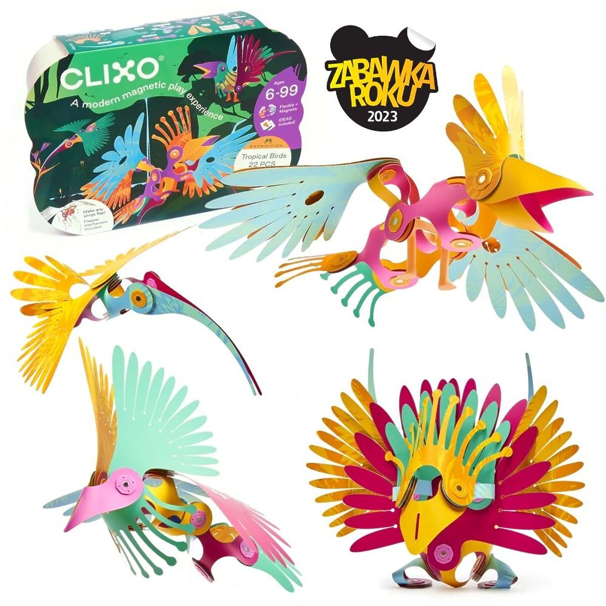 Banaby.fr » Jeu de construction / Magnétique jeu de construction / Clixo, Oiseaux tropicaux de la forêt tropicale, jeu de construction magnétique 22 pièces