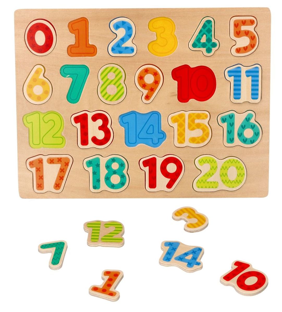 Les puzzles chiffres sont un jouet classique fabriqué en bois naturel. Le set se compose de 21 chiffres : les chiffres de 0 à 9 et les nombres de 10 à 20. .. plus