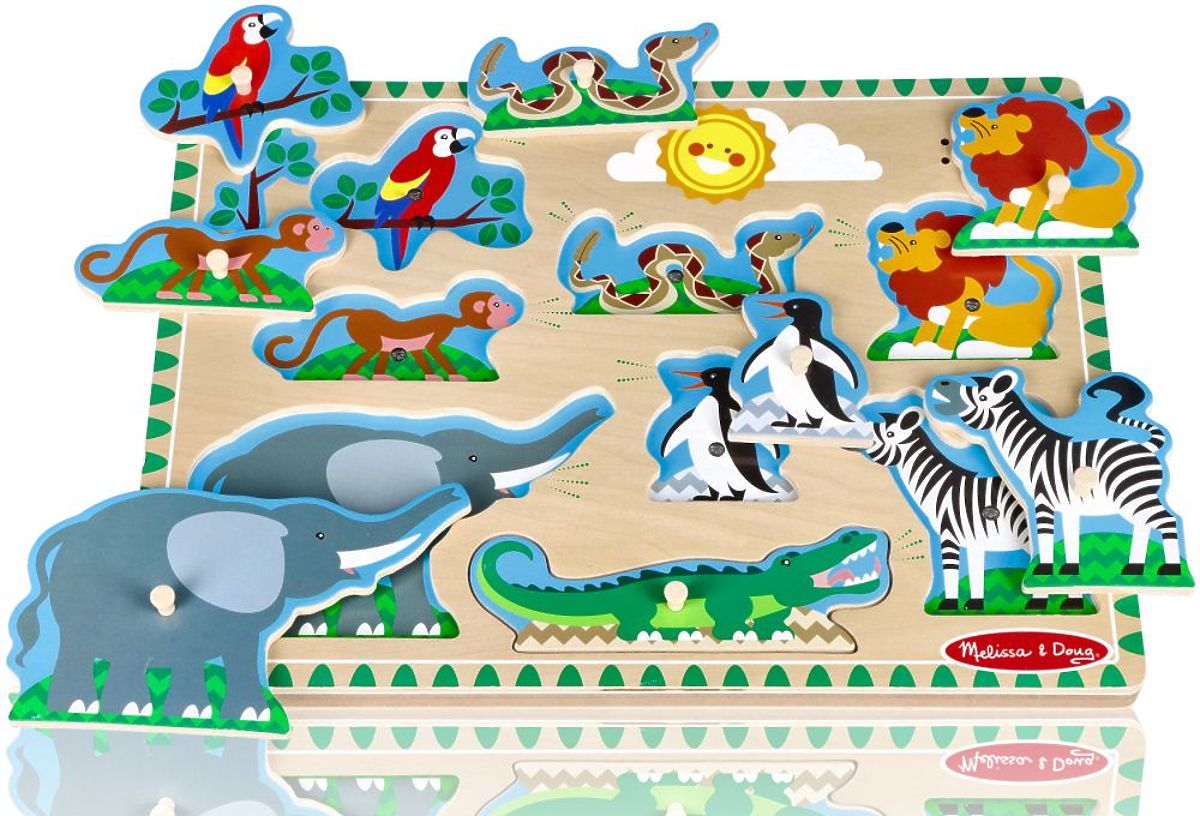 Le puzzle est fabriqué en bois naturel et se compose d'une base et de 8 animaux du zoo. Vous y trouverez : un crocodile, un pingouin, un lion, un singe, un éléphant, un serpent, un perroquet et un zèbre.