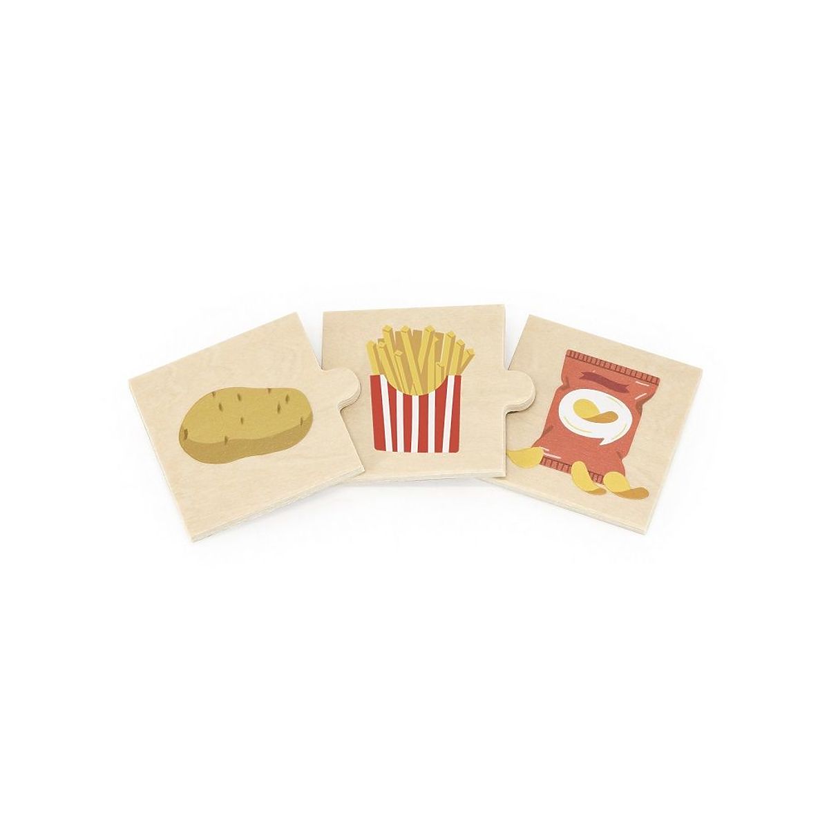 Ce puzzle en bois enseigne aux tout-petits la relation entre les aliments et les cultures dont ils proviennent. En associant des fruits, des légumes et des récoltes à des produits comme le popcorn, les céréales, le beurre de cacahuète ou les pâtes, les enfants découvrent l'origine de ces délices quotidiens. Ce type de jeu développe la compréhension des processus liés à la production alimentaire et encourage la découverte des étapes de transformation des cultures. Le puzzle enseigne la concentration et les compétences motrices.