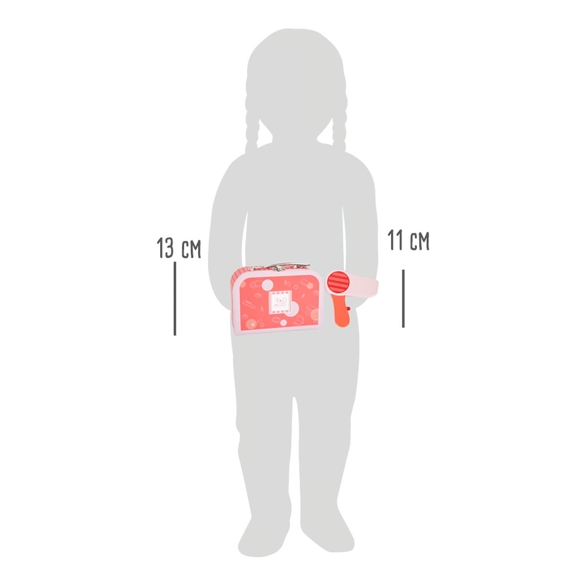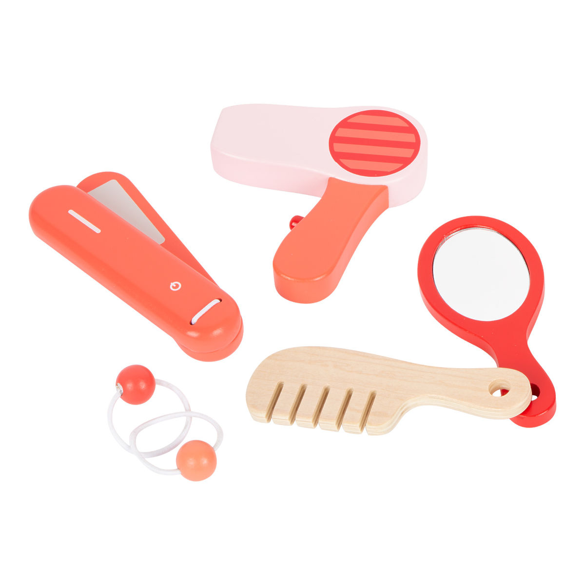 Artistes maquilleurs et maquilleuses, ceci est pour vous ! La valise cosmétique en bois est parfaite pour les jeux de rôle. Cet ensemble complet comprend un peigne, un miroir, un sèche-cheveux, un rouge à lèvres, une poudre, des ombres à paupières, un fer à lisser et aussi des élastiques. Enfin, vous pouvez vous maquiller comme maman ! La valise est équipée d'une serrure, et tous les accessoires y tiennent confortablement. Qui sera le premier à se faire coiffer ? Principales caractéristiques : 10 accessoires cosmétiques différents, emballage pratique