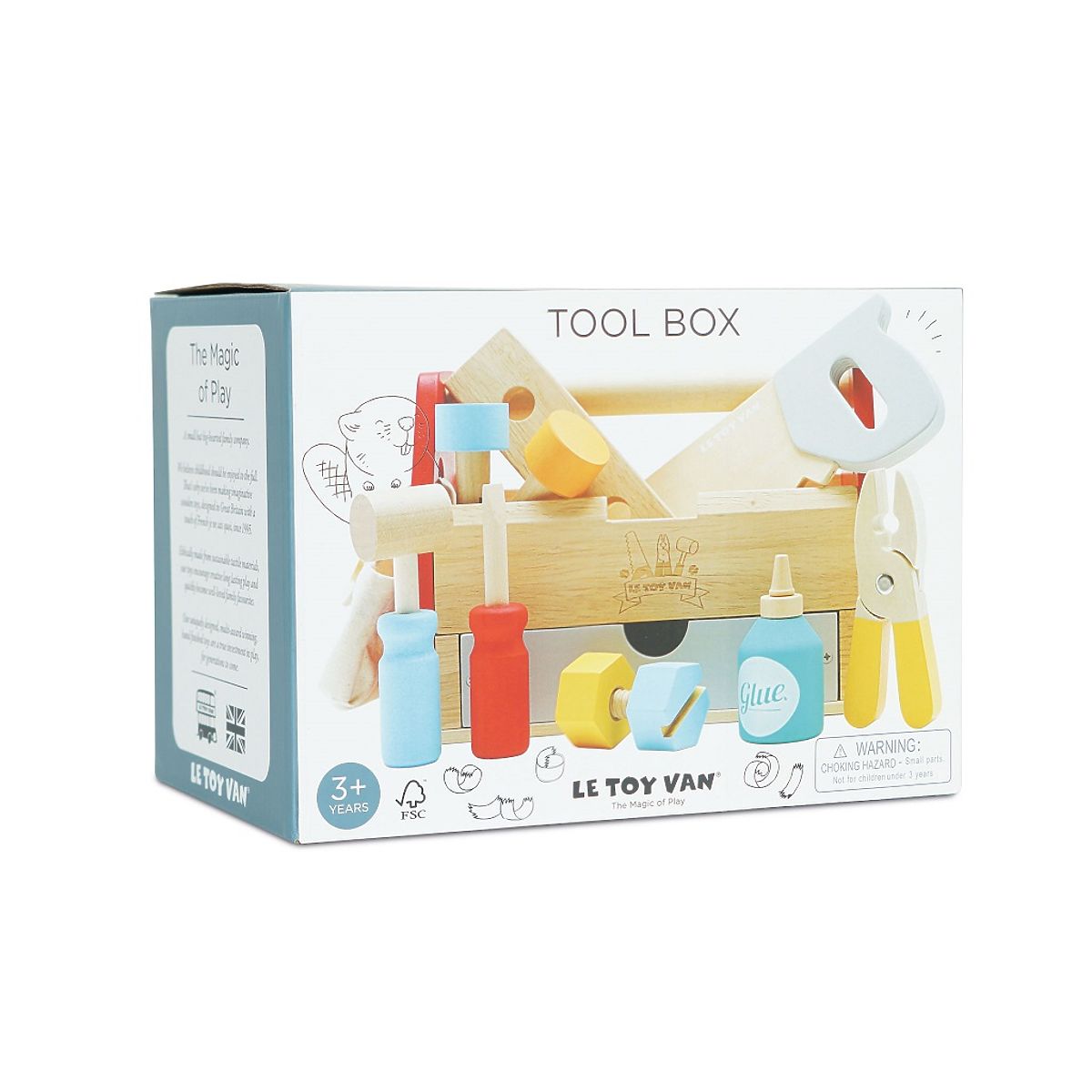 Stimulez l'esprit et les mains des jeunes avec ce jouet traditionnel. Les outils en bois dans une caisse pour garçons et filles sont parfaits pour entraîner la motricité lors de jeux imaginatifs. Le paquet comprend une caisse, un sac en tissu, une pince, un tournevis, une plaque perforée, deux clous, une vis avec écrou, de la colle en bois et un marteau. Fabriqué en bois durable, peint avec des peintures non toxiques à base d'eau. Jouets avec un butTous les jouets de la société Le Toy Van sont fabriqués pour durer longtemps. Conçus avec amour par des artisans expérimentés utilisant des pratiques éthiques et des matériaux durables, qui sont plus respectueux de notre planète. Principales caractéristiques : fabriqué de manière éthique à partir de bois durabletesté selon les normes les plus strictespeint avec des peintures non toxiques à base d'eauinspire le jeu imaginatifdéveloppe les compétences cognitives Récompenses du jouet:Junior Design Awards Shortlist 2018Good Toy Guide Recommended Véhicules & constructions: La collection de construction et de motricité de Le Toy Van, qui a remporté de nombreux prix. Plus précisément, plus de 15 prix pour des voitures imaginatives et des jouets de construction. Ils soutiennent l'imagination des enfants, sont parfaits pour le jeu imaginatif, développent la créativité et améliorent de manière ludique la coordination œil-main des enfants. La marque et le certificat FSC® (Forest Stewardship Council) garantissent que le bois utilisé pour fabriquer le produit n'a pas été récolté illégalement et provient de forêts gérées de manière responsable ou proche de la nature, où des exigences environnementales et sociales strictes sont respectées. La marque FSC® sur le produit signifie qu'en l'achetant, vous contribuez à protéger les forêts et soutenez une gestion responsable, respectueuse ou proche de la nature, grâce à laquelle nos forêts sont plus stables, plus saines, ont une composition d'espèces naturelle et résistent mieux aux effets négatifs des changements climatiques.