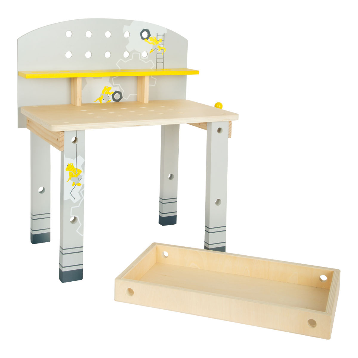 Il se passe vraiment beaucoup de choses dans cet atelier. Avec cet établi compact aux couleurs classiques, visiblement en bois, les enfants peuvent tester leur .. plus