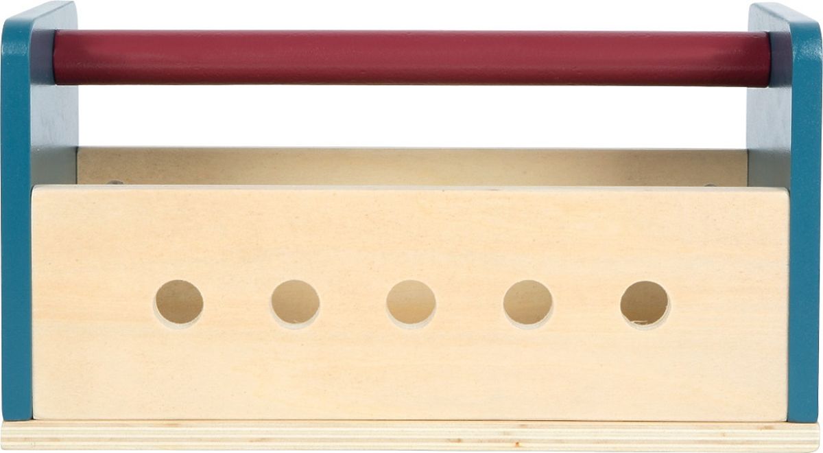 Ensemble d'outils en bois robuste dans une boîte avec poignée. Un jouet pratique 2 en 1, lorsque vous retournez la boîte à outils, vous pouvez l'utiliser comme établi ! Grâce à cette astuce, le jouet offre aux enfants des possibilités de jeu infinies, même en déplacement. L'emballage comprend 3 outils – un marteau, une clé, un tournevis et d'autres accessoires riches. Vous pouvez facilement ranger les outils dans la boîte ou les monter grâce à ses ouvertures. Avec cet ensemble, les petits artisans auront toujours leur équipement à portée de main. L'ensemble comprend : boîte à outils, marteau, clé, tournevis, 7 vis, 5 écrous, 2 grandes plaques perforées, 2 petites plaques perforées, 1 plaque perforée de taille moyenne, 2 plaques perforées en forme de diamant, 2 plaques perforées rectangulaires, 4 rondelles épaisses, 4 rondelles fines, 2 engrenages. Principales caractéristiques : conception robuste et durable établi et boîte à outils 2 en 1 3 outils en bois (marteau, clé, tournevis) accessoires complets comprenant des vis, des écrous, des engrenages, un ensemble de rondelles et des pièces perforées de différentes formes et tailles nombreuses possibilités de jeu en déplacement entraîne la motricité fine et la concentration développe l'imagination et la créativité s'accorde parfaitement avec les autres produits de la gamme Workshop compatible avec les produits des gammes Nordic, Miniwob