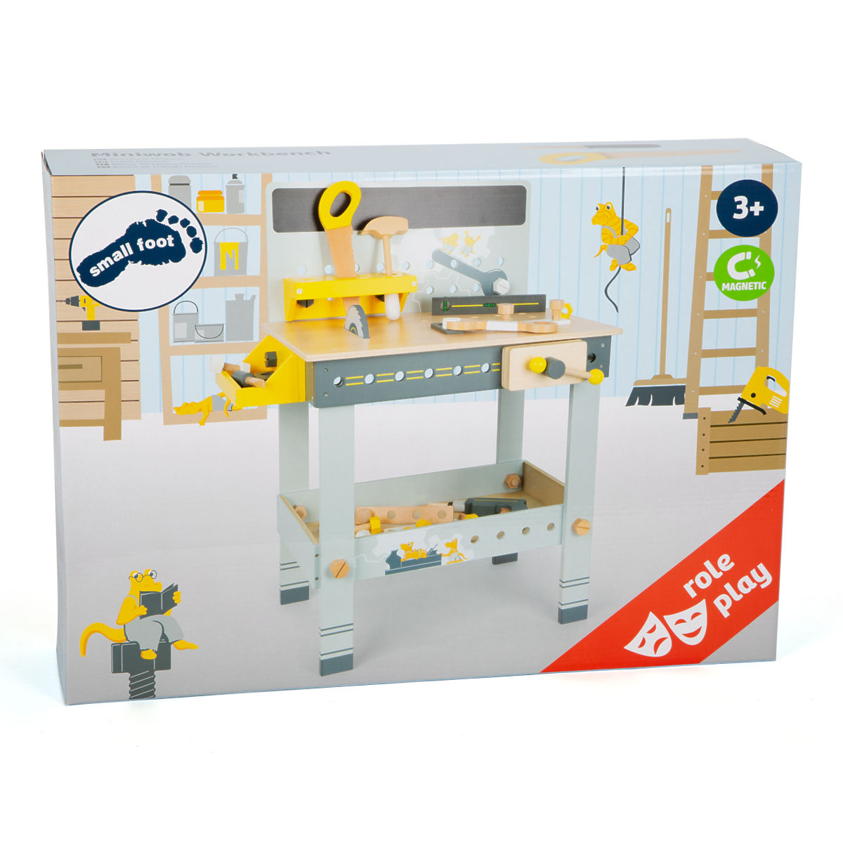 Scier avec une scie, tourner des vis, frapper avec un marteau ! Avec les adorables Miniwob, les enfants peuvent tester leur habileté et leur motricité fine. L'établi comprend des équipements tels qu'une scie circulaire, un tournevis électrique avec 3 embouts, un niveau à bulle, un étau, un marteau, une clé, une scie, 2 boîtes avec des trous pour vis, 6 lattes de construction, 16 vis, 16 écrous, 3 clous. Les enfants peuvent esquisser leur projet sur un tableau, ranger leurs outils dans de petites boîtes qui peuvent être accrochées sur le côté de l'établi. Les enfants peuvent même vous aider à assembler l'établi ! Couleurs minimalistes, beaucoup de bois visible, tout simplement le jouet parfait pour les petits bricoleurs et bricoleuses. Principales caractéristiques : Boîtes de rangement qui peuvent être vissées sur le côté de l'établi, huit outils en bois et divers accessoires, tableau pour esquisser le projet, les enfants peuvent aider à assembler l'établi, belles illustrations pour enfants Miniwob. Miniwob : Rencontrez les petits woby, des bricoleurs crocodiles enthousiastes ! Avec leur aide, tout travail se fait facilement et aucune construction n'est trop grande ou trop complexe. Une gamme variée d'outils et d'équipements offre un divertissement parfait pour tous les petits artisans, leur permettant d'être créatifs et de réaliser toutes leurs idées fantastiques. Les différents ensembles peuvent être combinés et élargis avec les compétences croissantes des enfants. Grâce au motif de couleur unifié et aux illustrations des adorables Wob, il est possible de créer un coin atelier unique et cohérent, qui sera également un ensemble de construction précieux développant habileté et imagination.