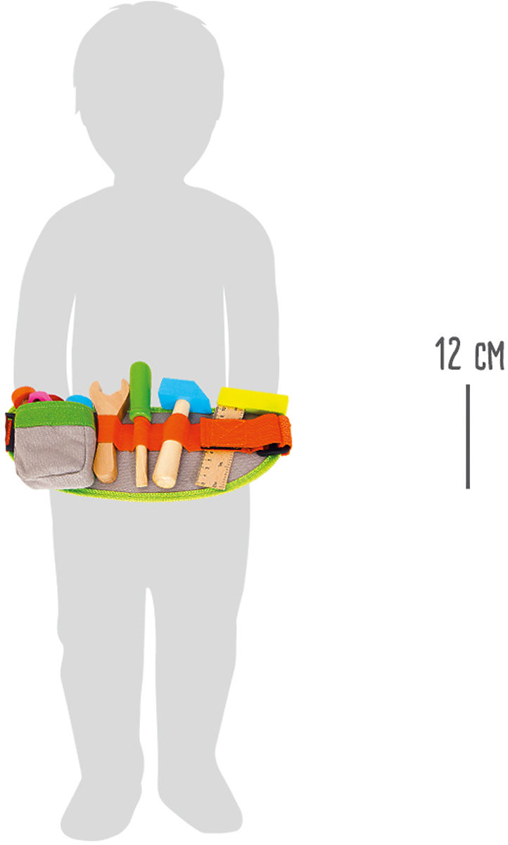 Une ceinture à outils pratique avec longueur réglable est un excellent assistant pour le petit bricoleur. Le set comprend de nombreux outils en bois laqué coloré – marteau, tournevis, clé, équerre, vis et écrous, que vous pouvez simplement accrocher à une boucle ou insérer dans une petite poche. Y a-t-il quelque chose à réparer, à rénover ? Principales caractéristiques : ceinture et 12 pièces d'outils en bois, ceinture en nylon réglable (41 – 103 cm), entraîne la motricité fine et le jeu de rôle.