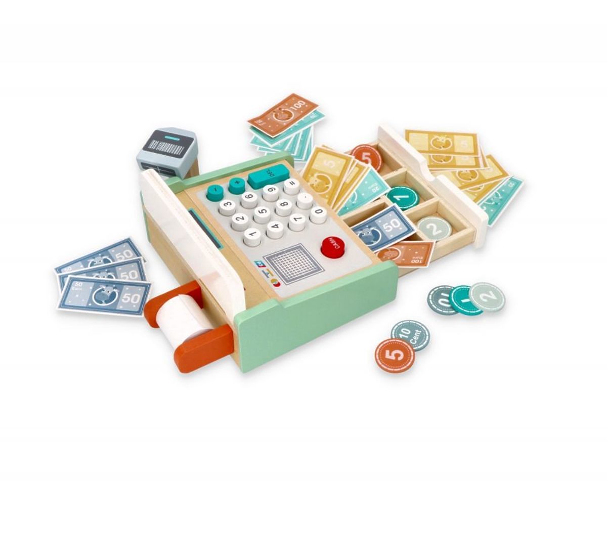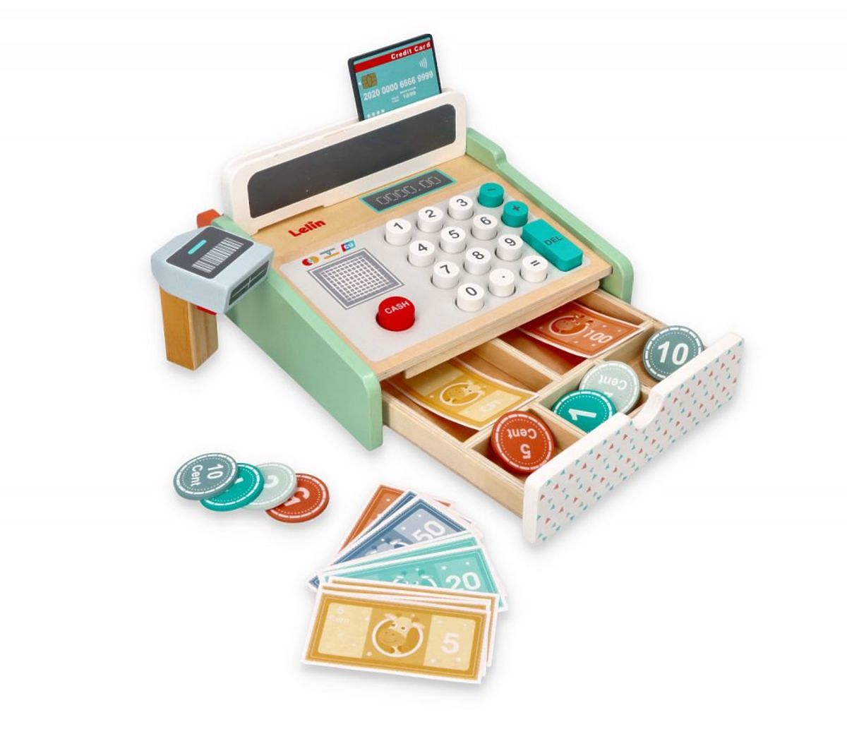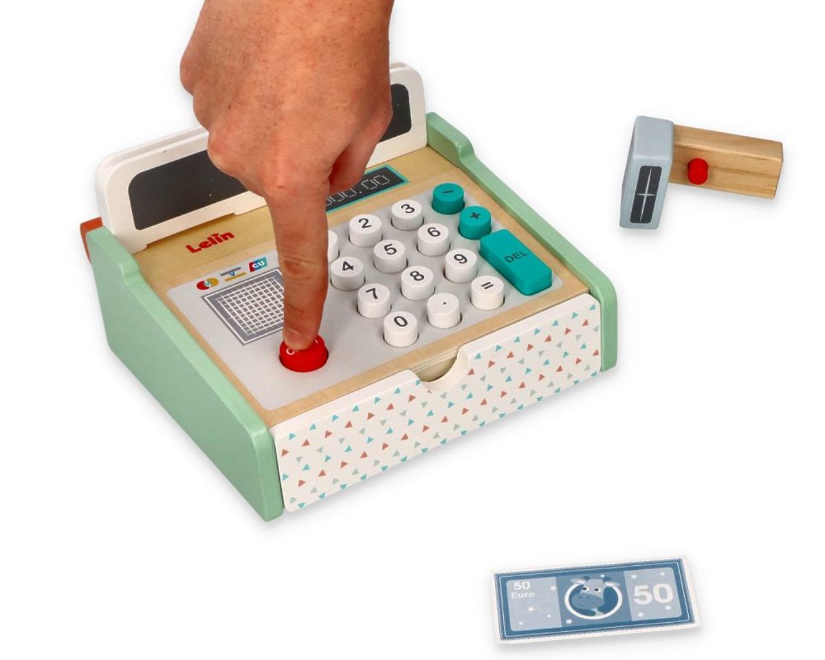 La caisse enregistreuse colorée du célèbre fabricant de jouets Lelin est un jouet idéal pour jouer au magasin, au restaurant ou à tout autre endroit où il est nécessaire de payer des produits ou des services. Station-service, salon de coiffure, fleuriste, salon de beauté ou atelier automobile - la caisse enregistreuse convient partout. Tant de possibilités en un seul jouet ;-)