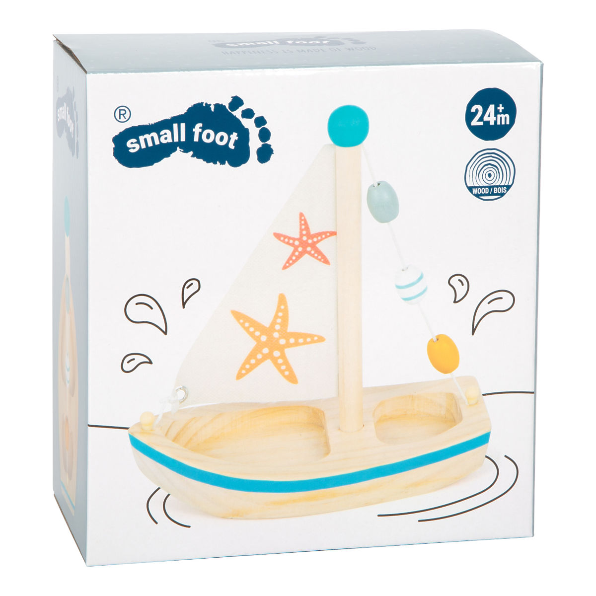 Tous les capitaines, attention s'il vous plaît ! Avec ce voilier en bois, les enfants se dirigent vers un monde plein de plaisirs aquatiques. Lorsque les jeunes marins lèvent l'ancre, rien ne les arrête dans leur jeu, que ce soit dans la baignoire, à la piscine ou à la mer. Le voilier est spacieux, permettant d'y placer leurs propres figurines. Le voilier est décoré de perles en bois et d'un motif d'étoile de mer. Les jouets aquatiques en bois sont une alternative écologique aux jouets en plastique et en caoutchouc. Pour prolonger la durée de vie du jouet, séchez-le bien après l'avoir retiré de l'eau. Principales caractéristiques : utilisation dans la baignoire, à la piscine ou à la mer, le jeu stimule l'imagination, lors de la navigation en plein air, il est propulsé par le vent.