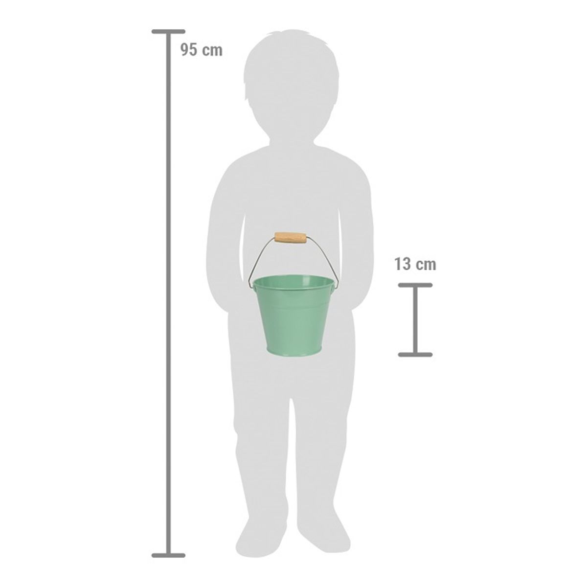 Dimensions : hauteur du seau env. 14 cm, Ø env. 15 cm, outils de jardin : env. 6,5x2,5x22 cm