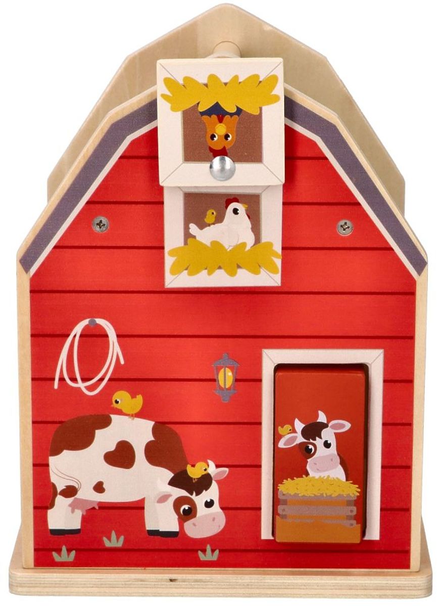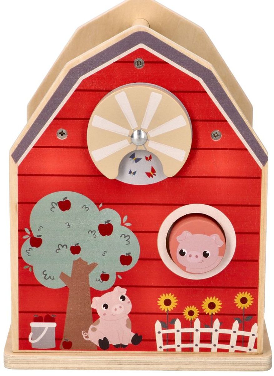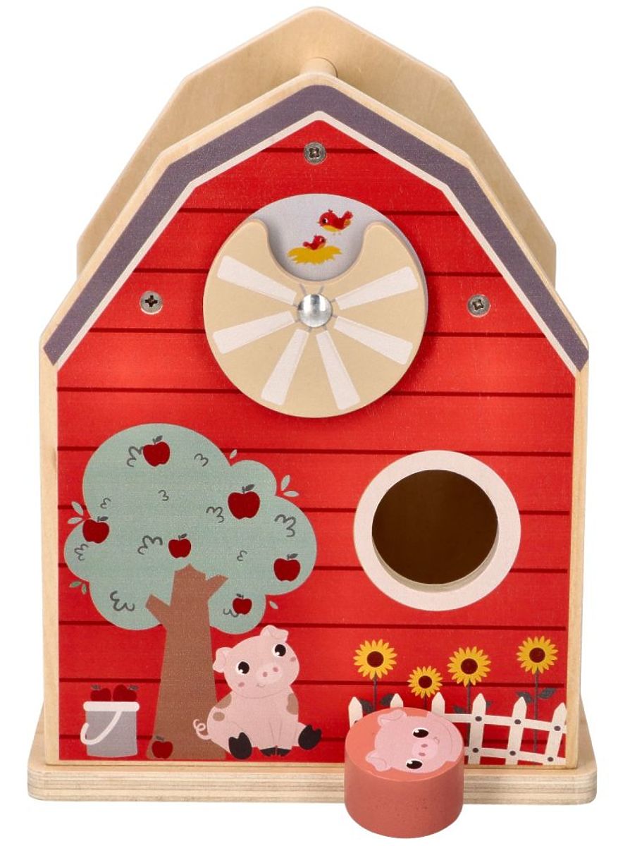 D'un côté, les enfants exercent leur coordination œil-main en essayant de faire entrer le bloc dans le trou, et de l'autre, leur réflexion et leurs capacités d'observation. Grâce aux différentes formes et couleurs des blocs, ils apprennent à les distinguer et acquièrent des connaissances sur le monde environnant et les différences entre les éléments. De plus, ils découvrent ici les animaux vivant dans cette belle ferme.