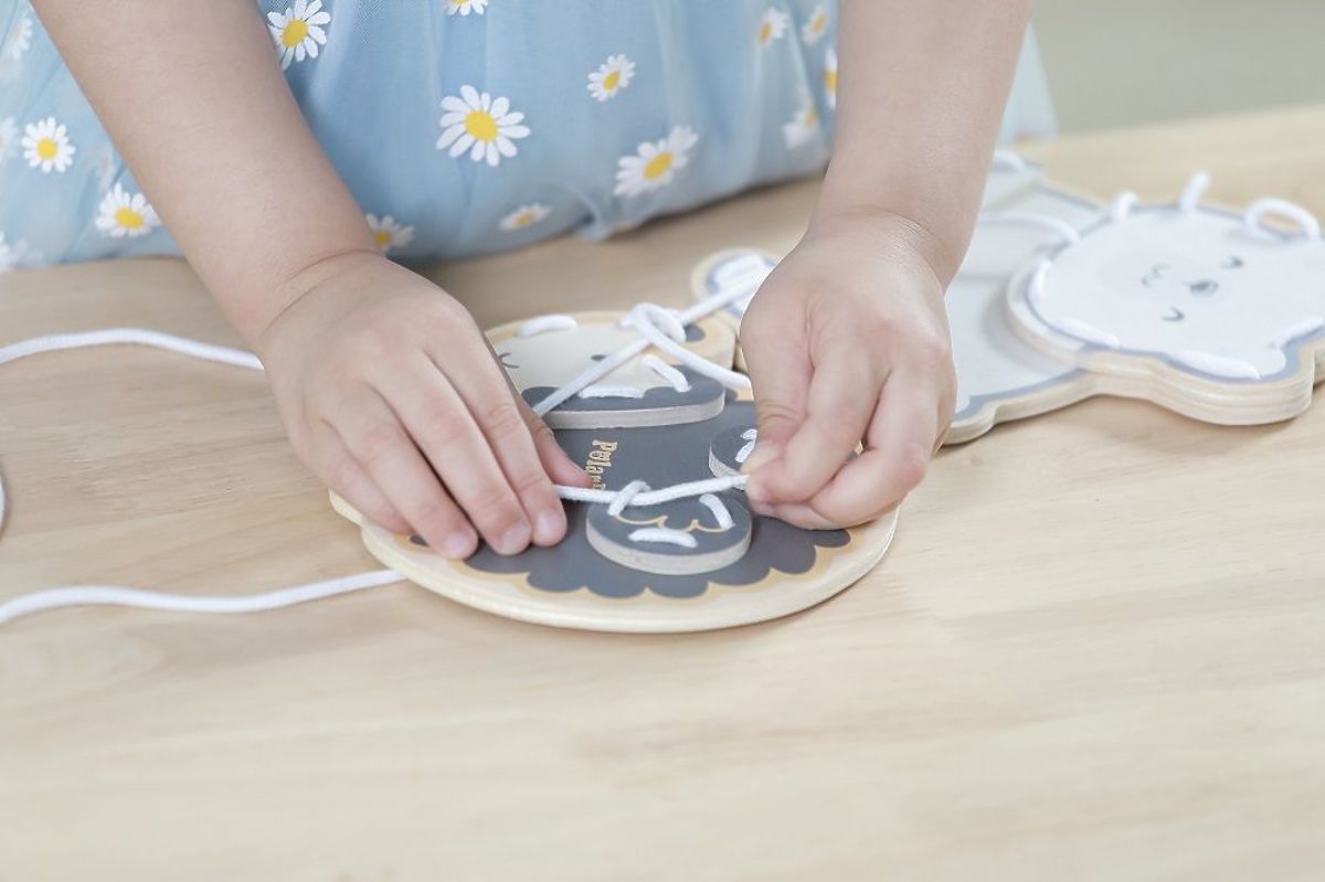 Prêts pour un entraînement des doigts ? Ces adorables animaux sont très exigeants. Ils invitent à jouer ensemble : chat, hérisson, chien et éléphant. Le jouet à enfiler présenté est destiné aux petits amateurs de travaux manuels. Nous avons ici quatre animaux, chacun divisé en différentes parties qui peuvent être assemblées à l'aide de ficelles. Il semble que chaque animal nécessite l'attachement d'une partie spécifique du corps, par exemple : attacher l'oreille et les pattes de l'éléphant, le museau et les piquants du hérisson, etc. Grâce à la variété des animaux, vous pouvez inviter des amis à jouer ensemble :)