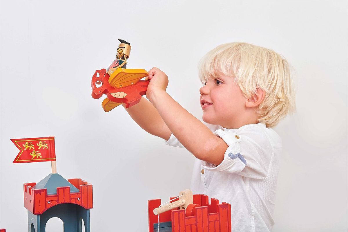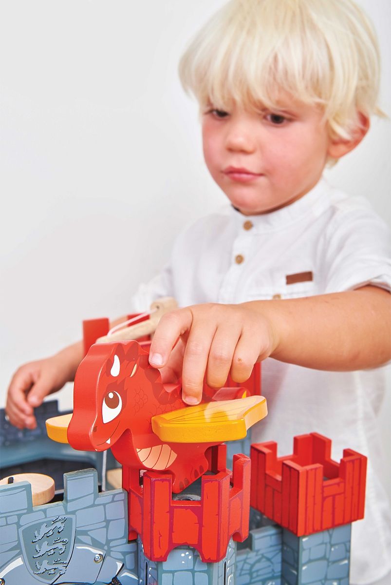 Ce petit dragon adorable est prêt pour toutes les aventures ! Il est fabriqué en bois massif et peint dans des tons rouges éclatants. Ses ailes sont attachées au corps avec un élastique, ce qui lui permet de les agiter ! Le dragon est peint avec des peintures à base d'eau non toxiques et fabriqué en bois durable. Un jouet sans plastique, parfait pour les châteaux et palais, pas seulement ceux de Le Toy Van. Principales caractéristiques : fabriqué de manière éthique à partir de bois durable, testé selon les normes les plus strictes, peint avec des peintures à base d'eau non toxiques, inspire le jeu imaginatif, aide au développement des compétences sociales et du langage. Collection de châteaux : Les châteaux en bois de Le Toy Van encouragent les enfants à jouer de manière imaginative, leur permettant de créer leurs propres scénarios d'aventure. Chaque château de la collection est riche en détails magnifiques, encourageant le jeu de rôle et améliorant la motricité des enfants.