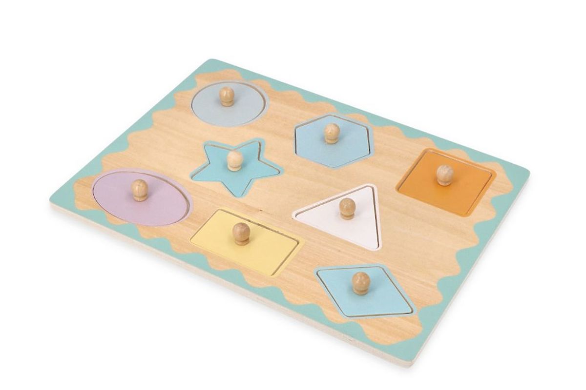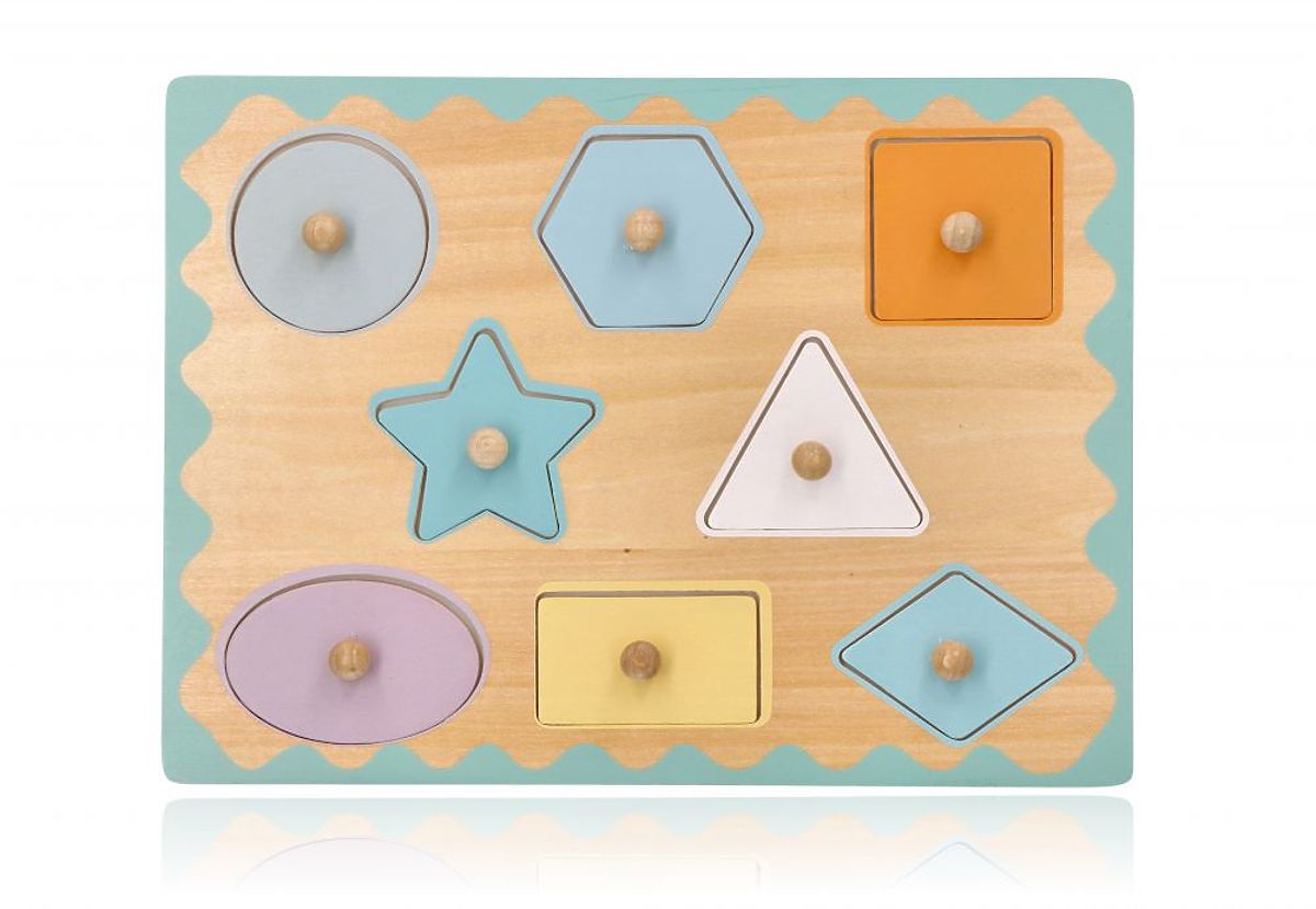 Le puzzle est entièrement fabriqué en bois naturel avec des éléments laqués et est sûr pour les jeunes enfants. Les couleurs douces attirent l'attention.