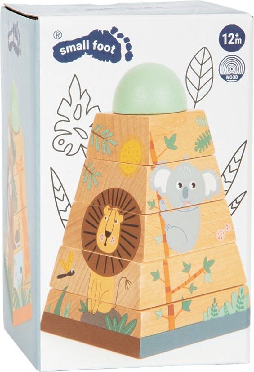 La pyramide empilable est un jouet classique de notre enfance. Cette fois-ci, avec un motif d'animaux de la savane, par le fabricant allemand de jouets reconnu Small Foot Design.