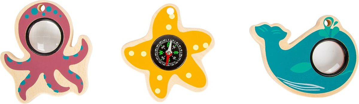 Attention à tous les aventuriers et passionnés des océans ! Avec ces jouets, vous serez bien équipés pour naviguer en mer. L'étoile de mer avec une boussole intégrée montre la direction aux enfants, la baleine les aide à tout garder "à l'œil", tandis que la pieuvre offre une nouvelle perspective. Les jouets-outils ont un trou pour une ficelle, permettant aux enfants de les porter autour du cou ou de les garder dans leur poche.