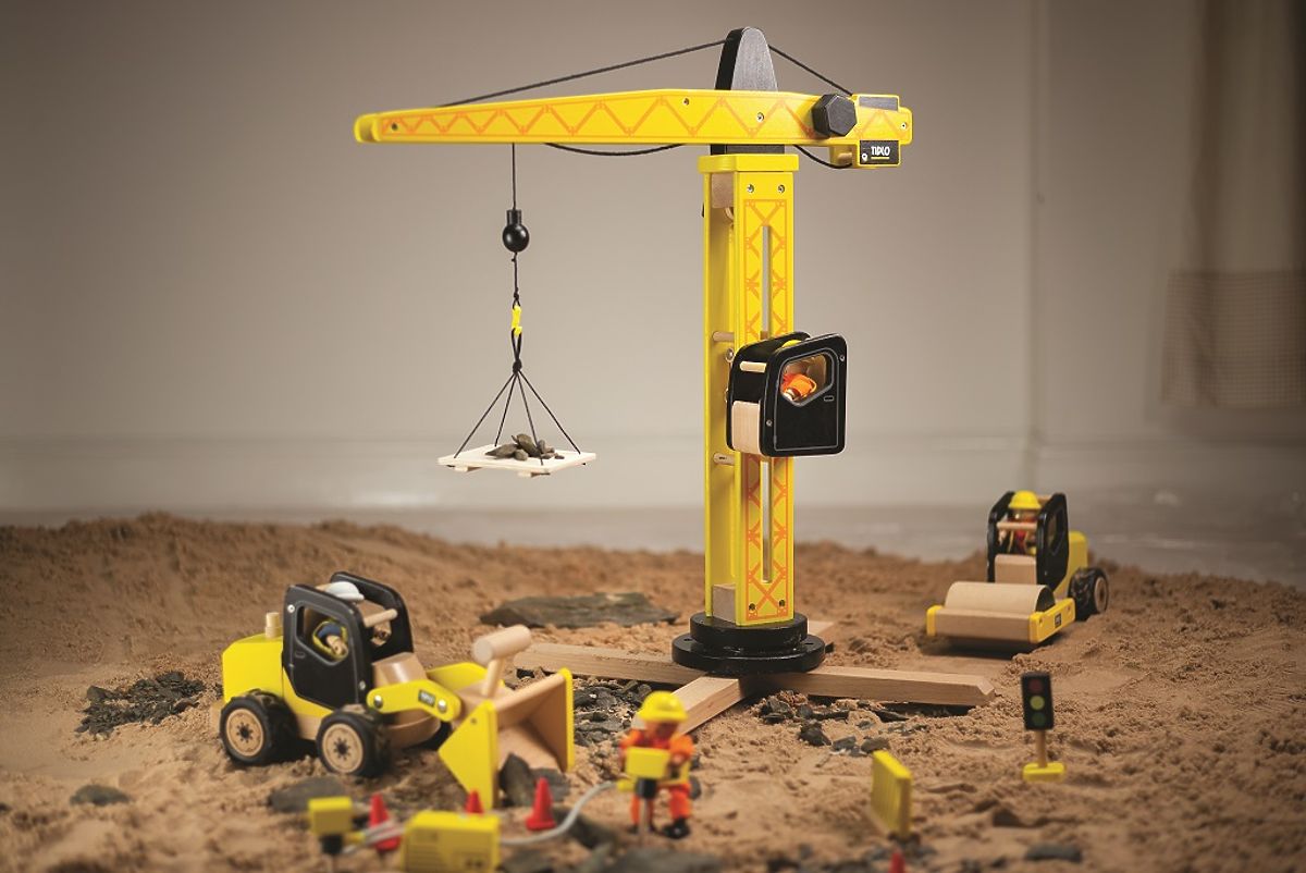 Une grue se dresse au-dessus du chantier, prête à transporter tous les matériaux ! La grue est entièrement fonctionnelle, pivotant à 360 degrés avec une palette sur le crochet qui soulève la charge vers le haut et vers le bas. La cabine est ouverte par le haut, permettant d'y insérer facilement un ouvrier. Compatible avec les figurines de constructeurs Tidlo (non incluses). Encourage la créativité et l'imagination des enfants. Développe la coordination œil-main et la motricité fine. Fabriqué à partir de matériaux de qualité provenant de sources responsables. Conforme à la norme de sécurité européenne. Principales caractéristiques : rotation à 360 degrés, palette sur le crochet, cabine ouverte, encourage la créativité et l'imagination, développe la motricité fine