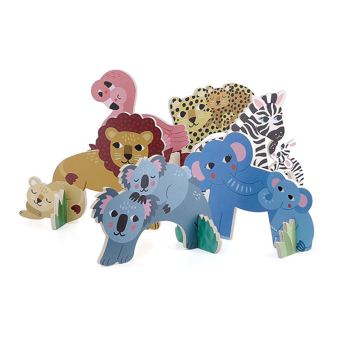 Jeu de croquet en bois avec illustrations d'animaux et leurs petits. .. plus
