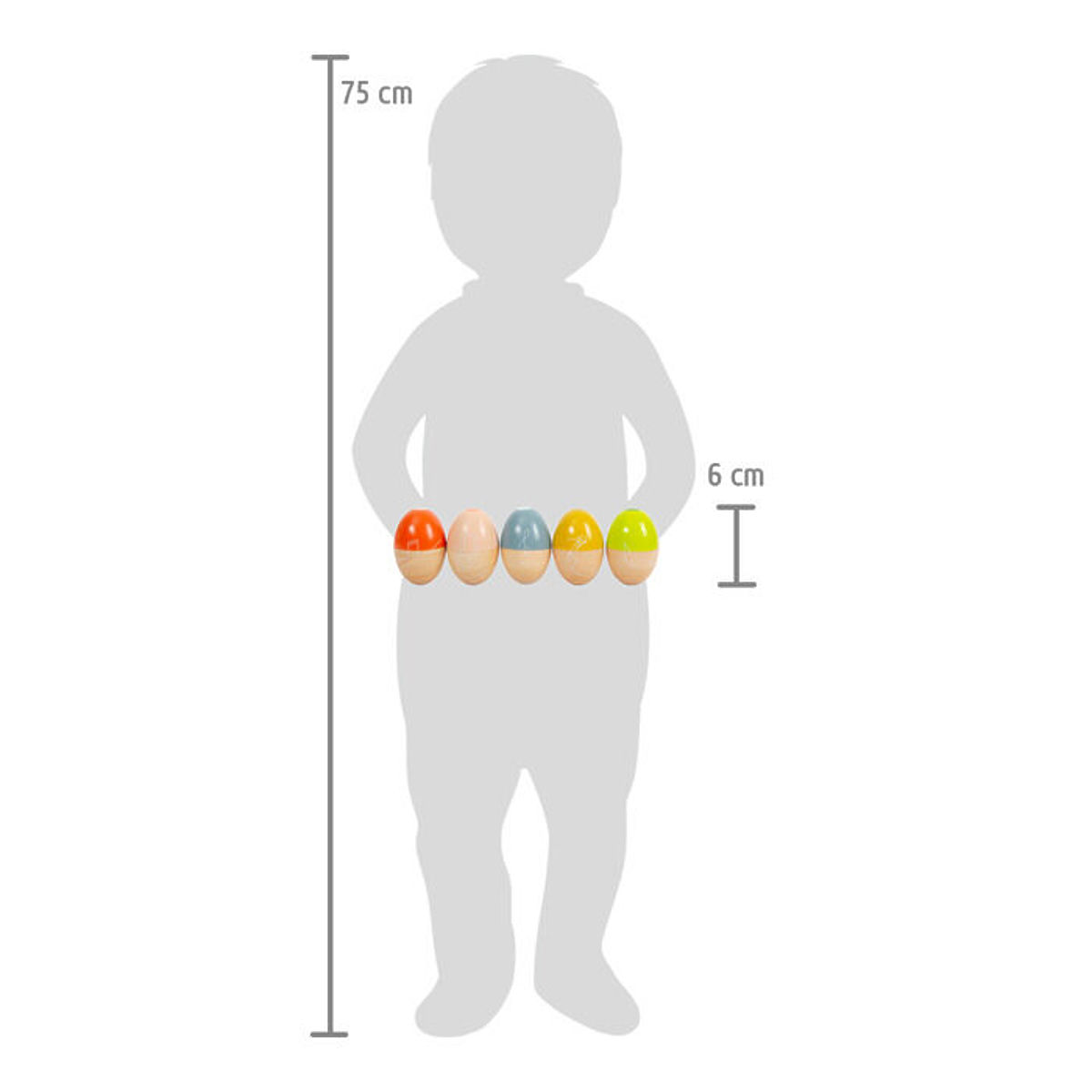 Secouez, agitez et roulez ! Créez ainsi des sons merveilleux et agréables pour vos oreilles ! Chacun des cinq œufs à hochet fabriqués en bois massif robuste .. plus