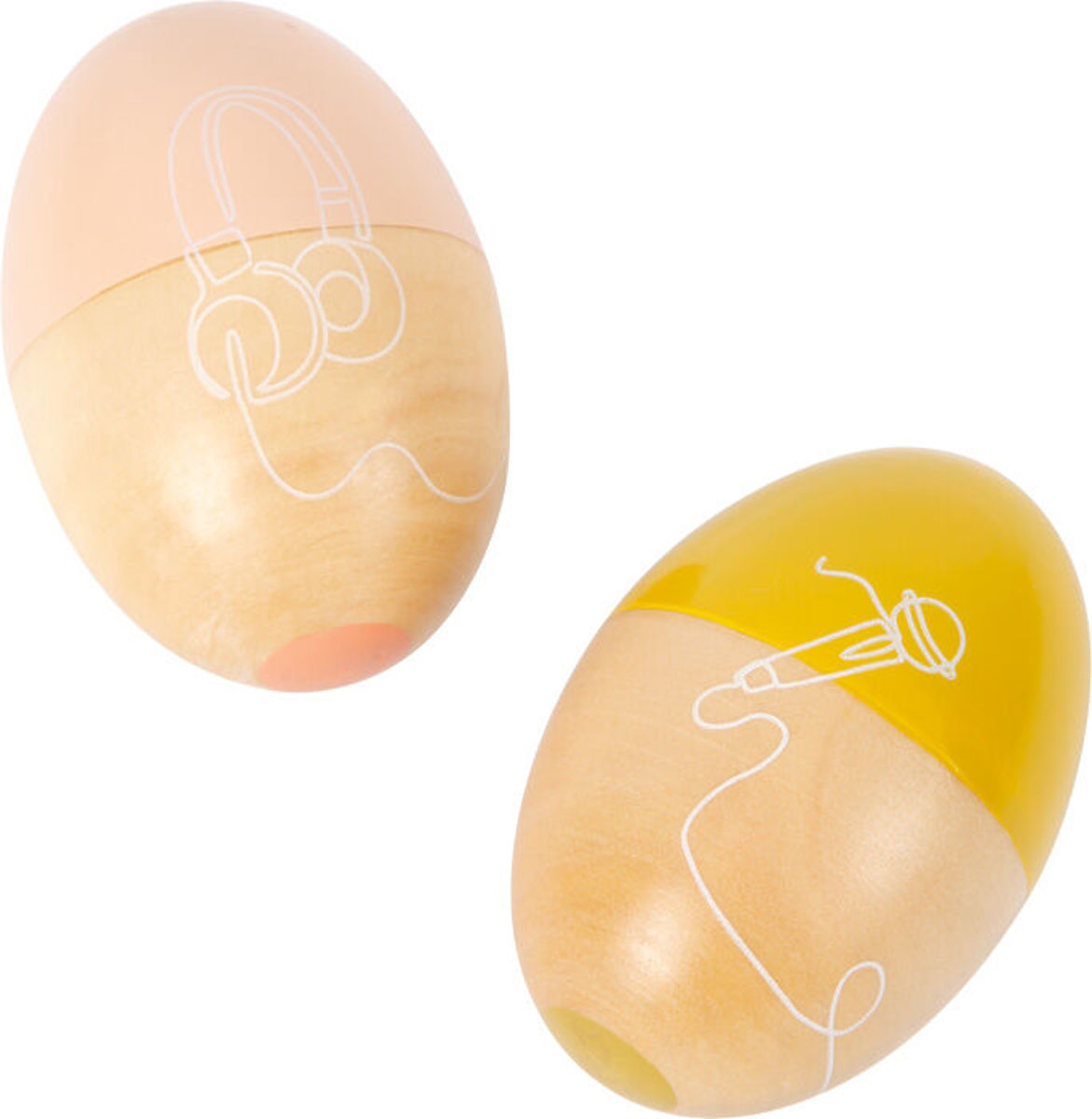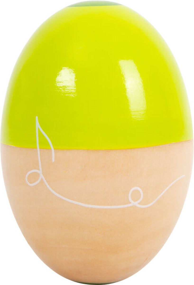 Secouez, agitez et roulez ! Créez ainsi des sons merveilleux et agréables pour vos oreilles ! Chacun des cinq œufs à hochet fabriqués en bois massif robuste émet un son différent et offre toutes sortes de plaisirs rythmiques. Les œufs ont une belle forme et sont faciles à saisir pour les petites mains des enfants. Grâce à la combinaison de bois naturel et de couleurs contrastées modernes, ces œufs musicaux sont également des accroche-regards visuels ! Un succès absolu pour les amateurs de son ! Les œufs musicaux à hochet entraînent la perception acoustique ainsi que le sens du rythme, et également la coordination main-œil. Parfait pour une éducation musicale précoce ! Principales caractéristiques : Développe la motricité fine et la créativitéIntroduction ludique au monde du son et du rythmeChaque œuf musical émet un son différent