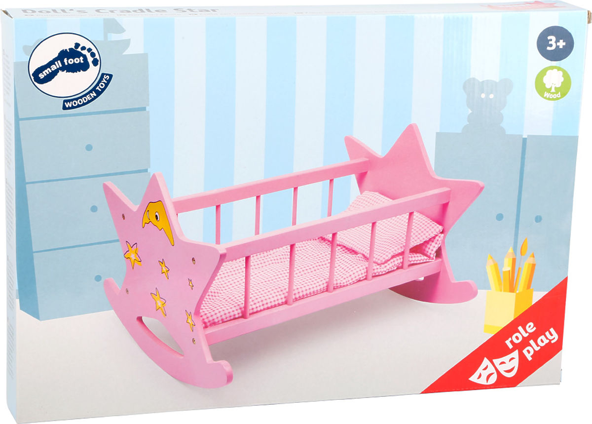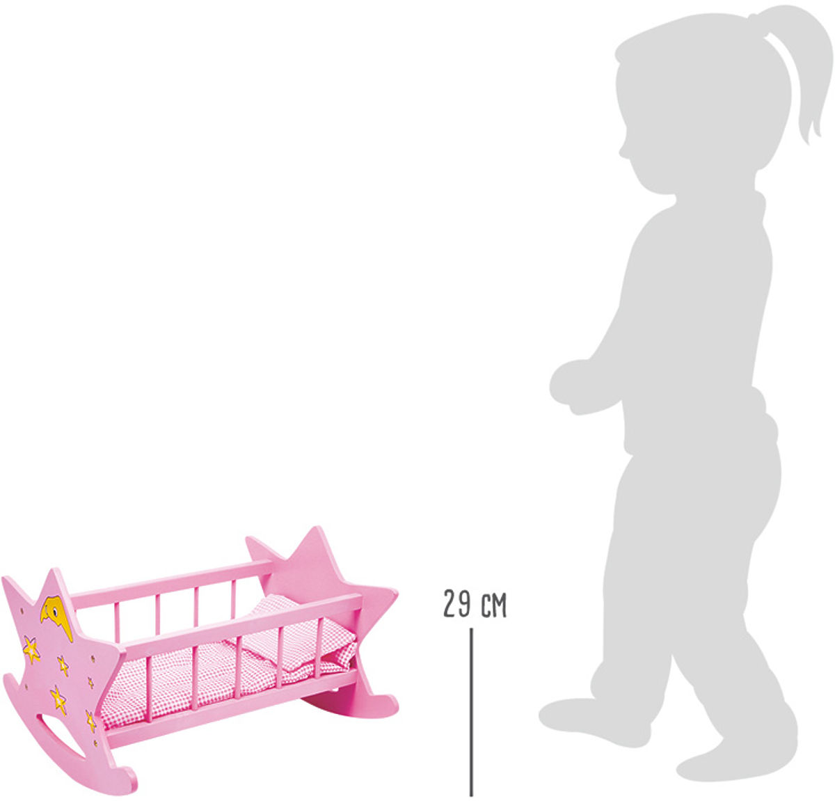 Attention à tous les observateurs d'étoiles. Avec ce superbe berceau pour poupées en bois robuste, les enfants bercent leurs poupées dans leurs rêves. L'avant et l'arrière du berceau présentent un design de ciel étoilé. Principales caractéristiques : favorise le jeu actif et entraîne les compétences sociales, construction stable, finition de qualité, adapté aux crèches