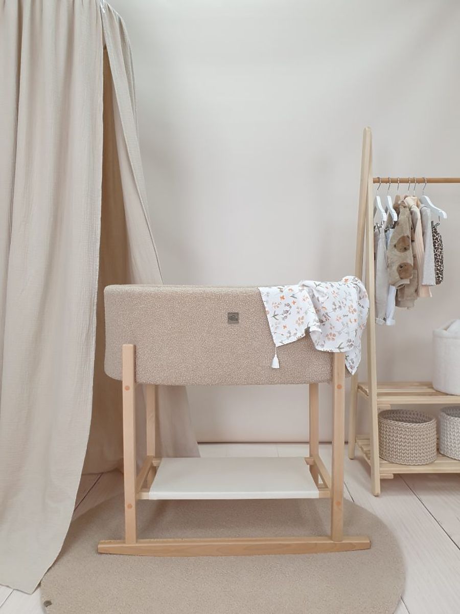 Ce couffin Moïse unique est fait main à partir de matériaux de première qualité. Une base en bois stable et des parois solides en mousse anti-allergique assurent sécurité et confort à votre bébé. Grâce à son revêtement moderne en tissu doux Teddy (bouclé), le couffin est à la fois accueillant et élégant, s'intégrant parfaitement dans tout intérieur.