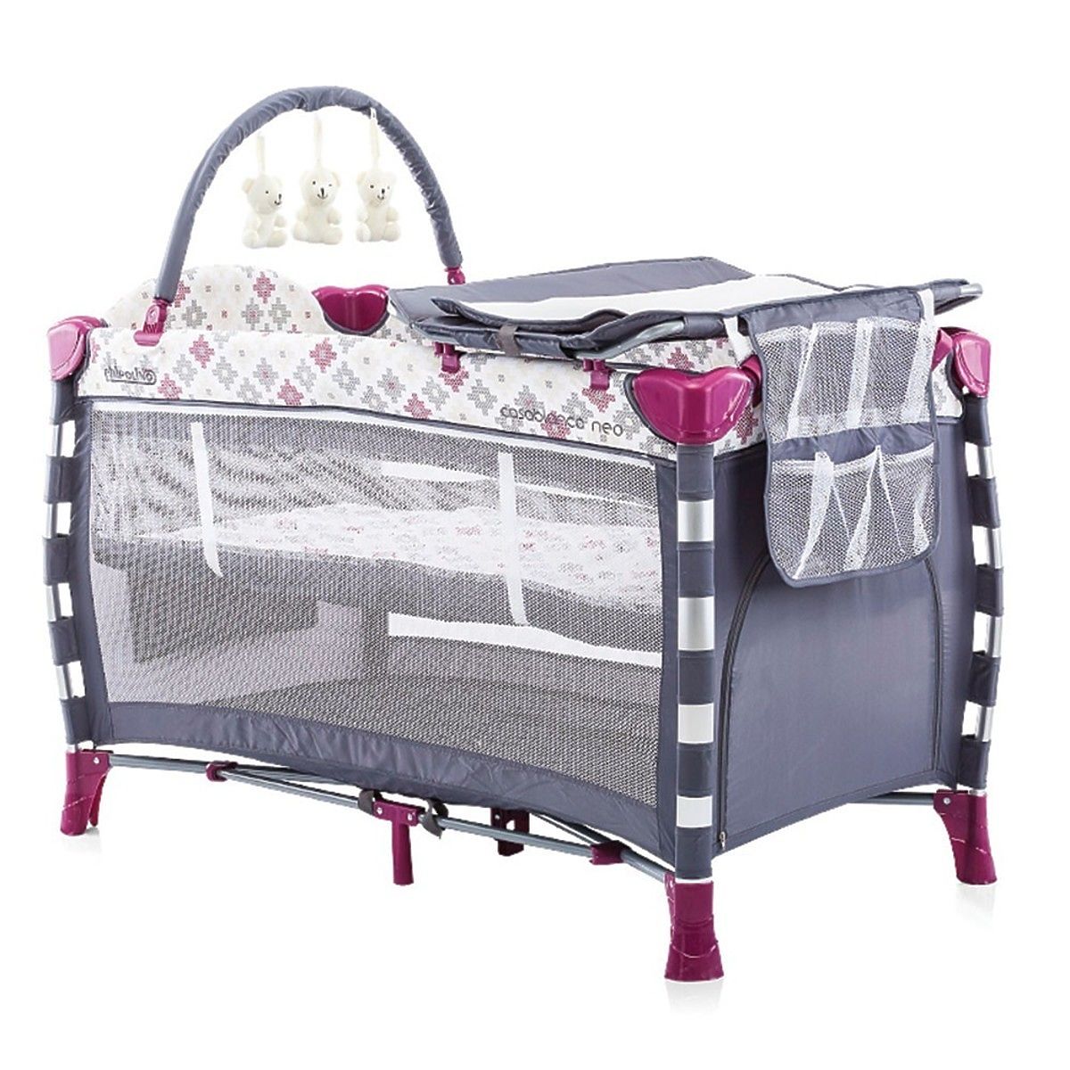 Sur la route avec des enfants obtenir un stylo élégant voyage de Play lit Casablanca Neo dans une très belle couleur. Lit pliant est confortable pour l’enfant et les parents de très pratique, est réglable, les côtés de l’entrée a une fermeture éclair, poche latérale pour les jouets ou autres besoins. Lit de voyage bébé dispose d’une table à langer stable et pratique, vous l’utilisez à la maison, où il peut créer un espaces de jeu. Haut et transportés dans un sac. Adapté aux enfants jusqu'à 15 kg.
