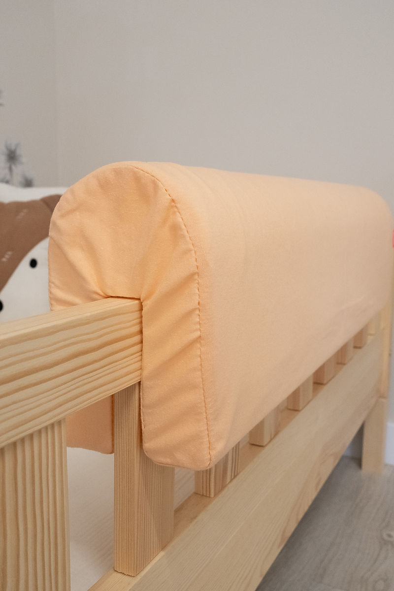 Douce, sûre et belle. Telle est la protection de lit pêche Ourbaby, qui est un excellent complément pour toute chambre d'enfant. Le protège-lit est fabriqué en mousse de polyuréthane de haute qualité et la housse est en tissu Jersey doux et agréable. Il est disponible en trois tailles et s'adapte parfaitement à tous les lits.