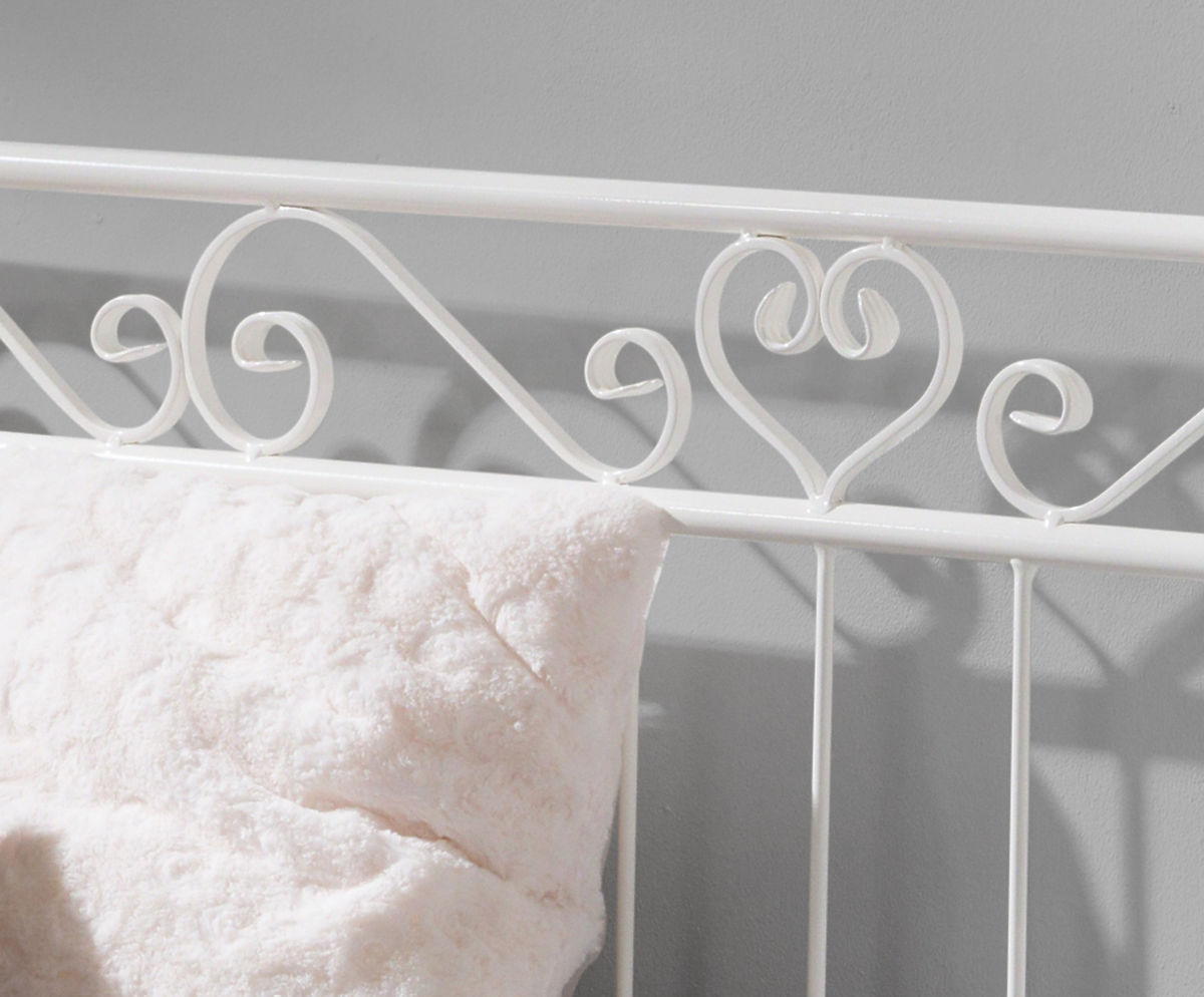 Le lit magnifique en métal fait à la main destiné à la chambre d'enfant vous apportera le style et l'élégance. Vous allez adorer les beaux éléments décoratifs, tels que le cœur sur le côté du lit ou les parties forgées de type « S ». La forme originale du lit peut également servir de canapé. Les extrémités rondes du lit sont très pratiques et sûres. Le canapé est un accessoire idéal pour la chambre d'enfant, la terrasse ou le jardin.