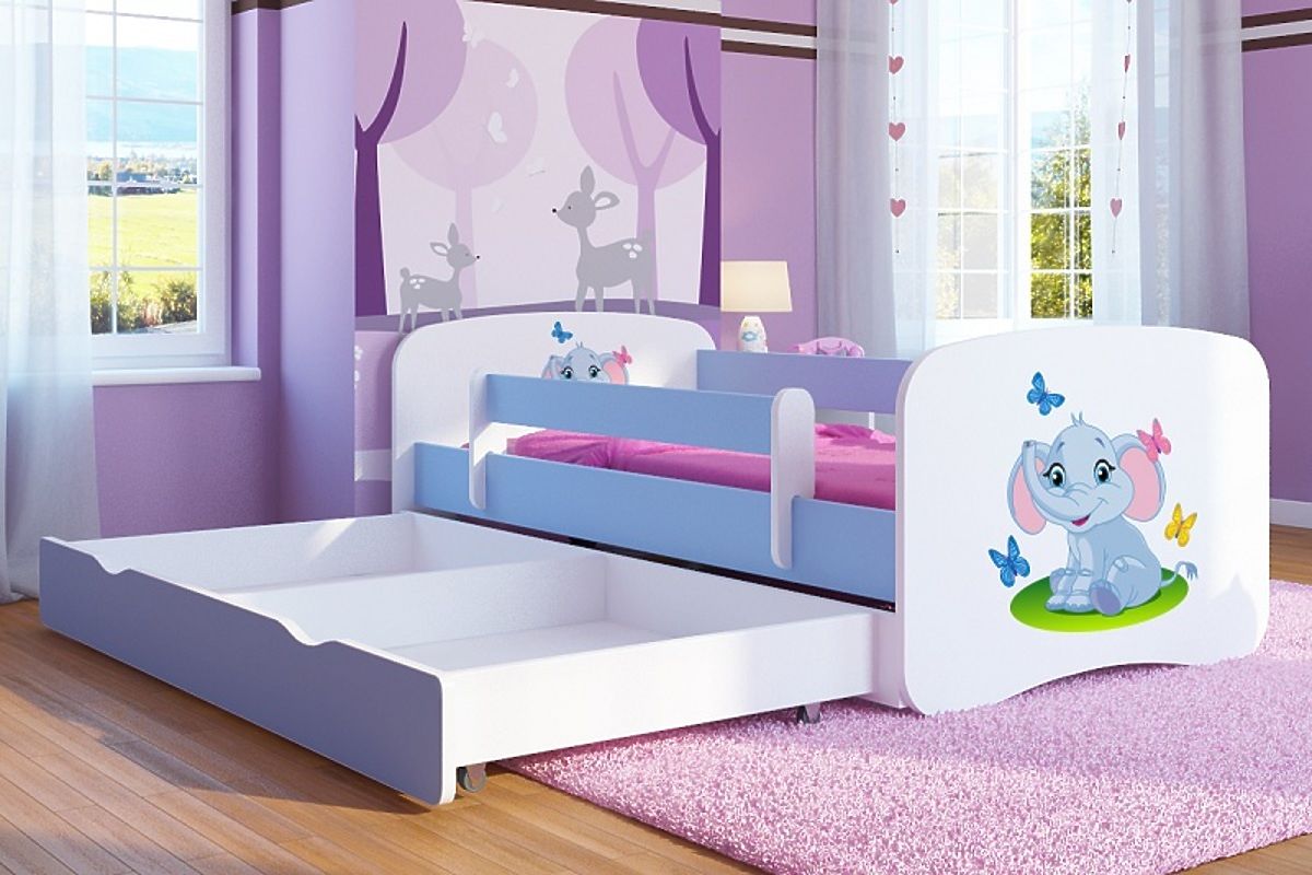 Banaby.fr » Lits enfant / Lits enfant avec barrière / Bébé lit avec barrière Ourbaby - Bébé éléphant - bleu