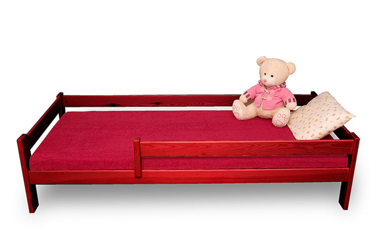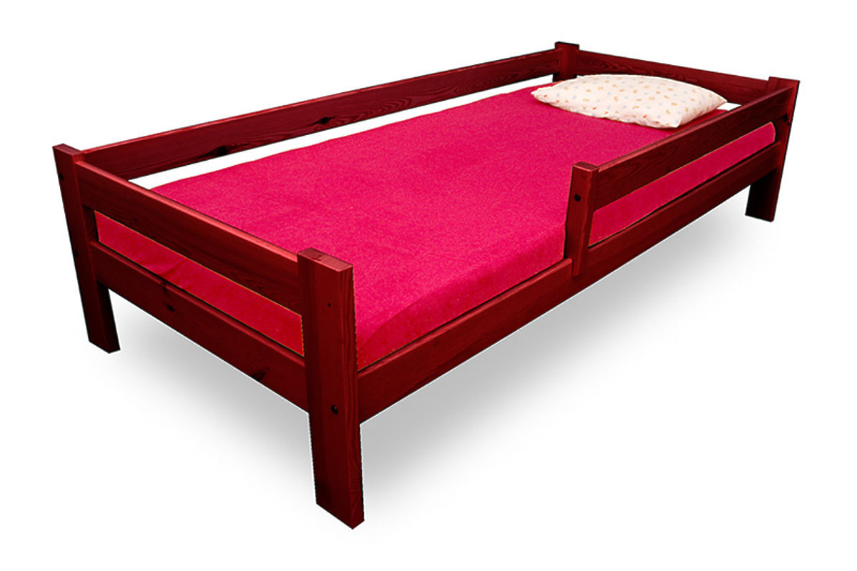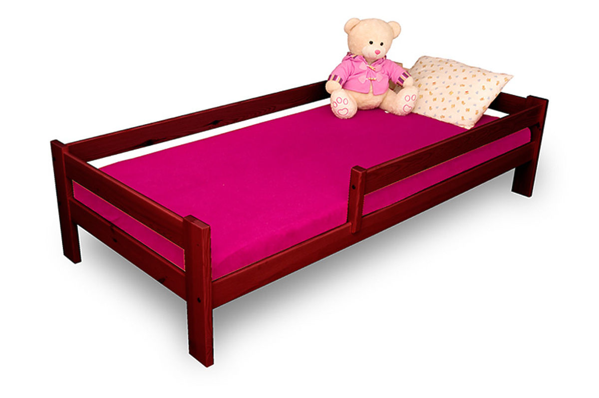 Le lit barrière enfant en couleur acajou est luxueux et à la fois traditionnel par sa fabrication en bois de pin. Mais il n´est pas vraiment classique comme on pourrait le considérer. Il combine des éléments modernes qui seront appréciés aussi par vos enfants. Il est doté de la barrière arrière, de la barrière latérale et du sommier en bois. Les bords du lit sont arrondis. La période de garantie est de deux ans. Le lit est peint avec trois couches de vernis qui n´est pas nocif pour la santé, est inodore et ne représente pas de danger pour les chambres d´enfant. Le vernis est également respectueux de l´environnement et antiallergique. Il résiste aussi aux changements climatiques. Il ne contient pas de substances aromatiques, de composés carcinogènes et d'autres agents toxiques. Le vernis protège le lit contre les rayures. Le lit est livré démonté avec tous les éléments nécessaires pour le montage. Le lit est stable et permet aux parents de s´asseoir auprès l´enfant. La capacité de charge est jusqu´à 100 kg. Il est à vous de choisir si la barrière sera placée à gauche ou à droite. Le matelas n´est pas inclus, mais vous pouvez le commander dans la section MATELAS avec les dimensions appropriées. La possibilité de barrière : - pour 140, 160, 180 est pour 190,200 de 86 cm et 96 cm