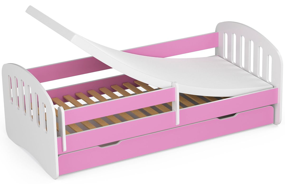 Lit enfant PLAY avec sommier et matelas. Lit complet pour garçon ou fille pour la chambre d'enfant. Couleur rose.