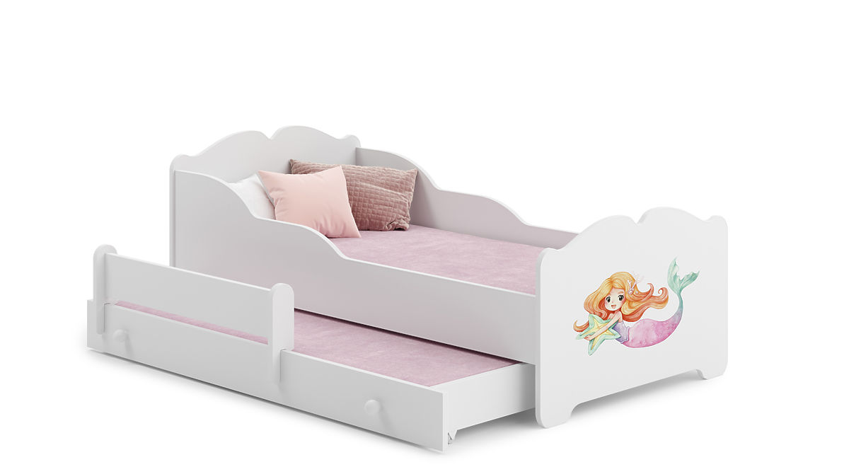 Lit double blanc avec motif sirène pour chambre de fille. .. plus