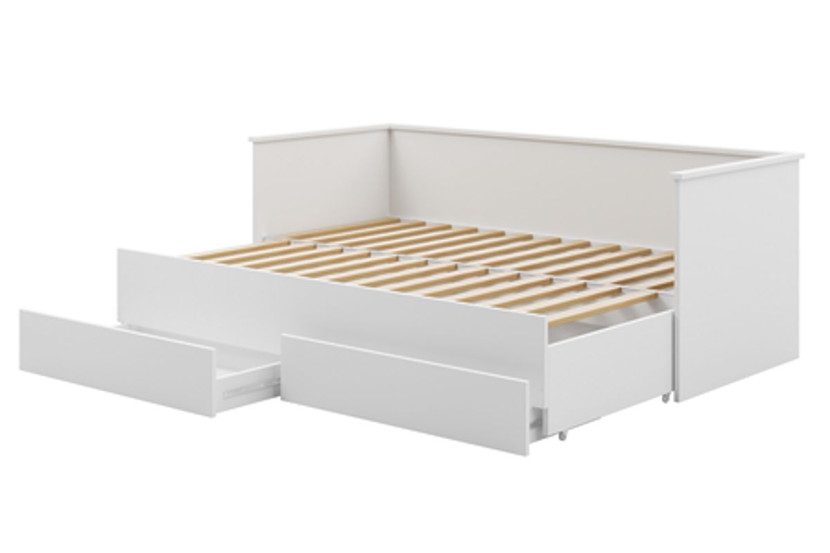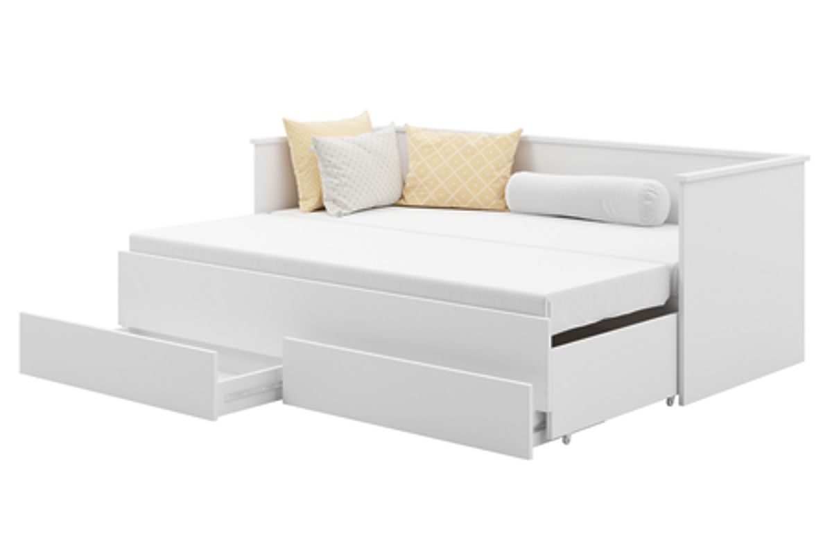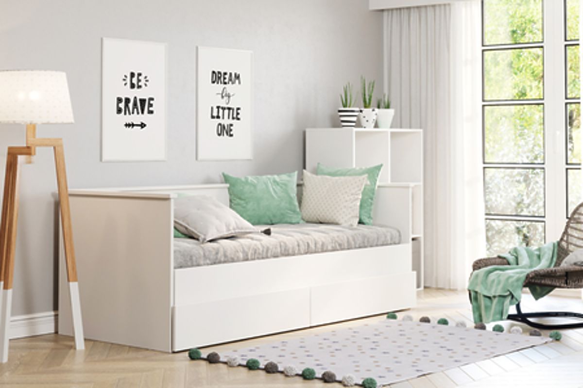 Le modèle HELIOS n'est pas seulement un endroit confortable pour dormir, mais aussi une solution pratique pour un usage quotidien. Grâce à ses tiroirs spacieux sur glissières à billes, le rangement du linge de lit, des vêtements ou des petits objets est très facile, permettant de maintenir l'ordre dans la chambre. Une fois replié, le lit sert de canapé élégant et confortable, idéal pour se détendre pendant la journée ou recevoir des invités. La structure solide en panneau de meuble de haute qualité de 18 mm d'épaisseur assure durabilité et stabilité, tandis que les lattes en bouleau du sommier offrent un bon soutien au matelas, garantissant un sommeil confortable chaque nuit.