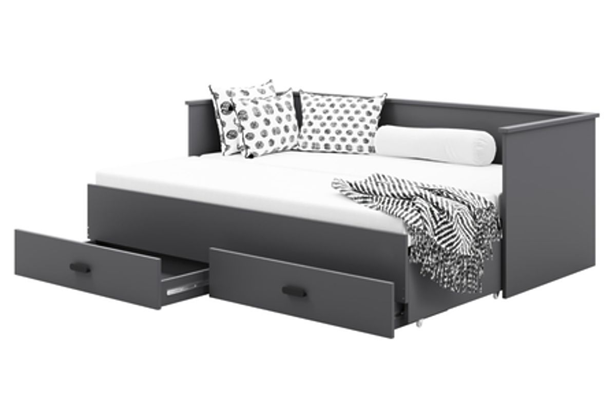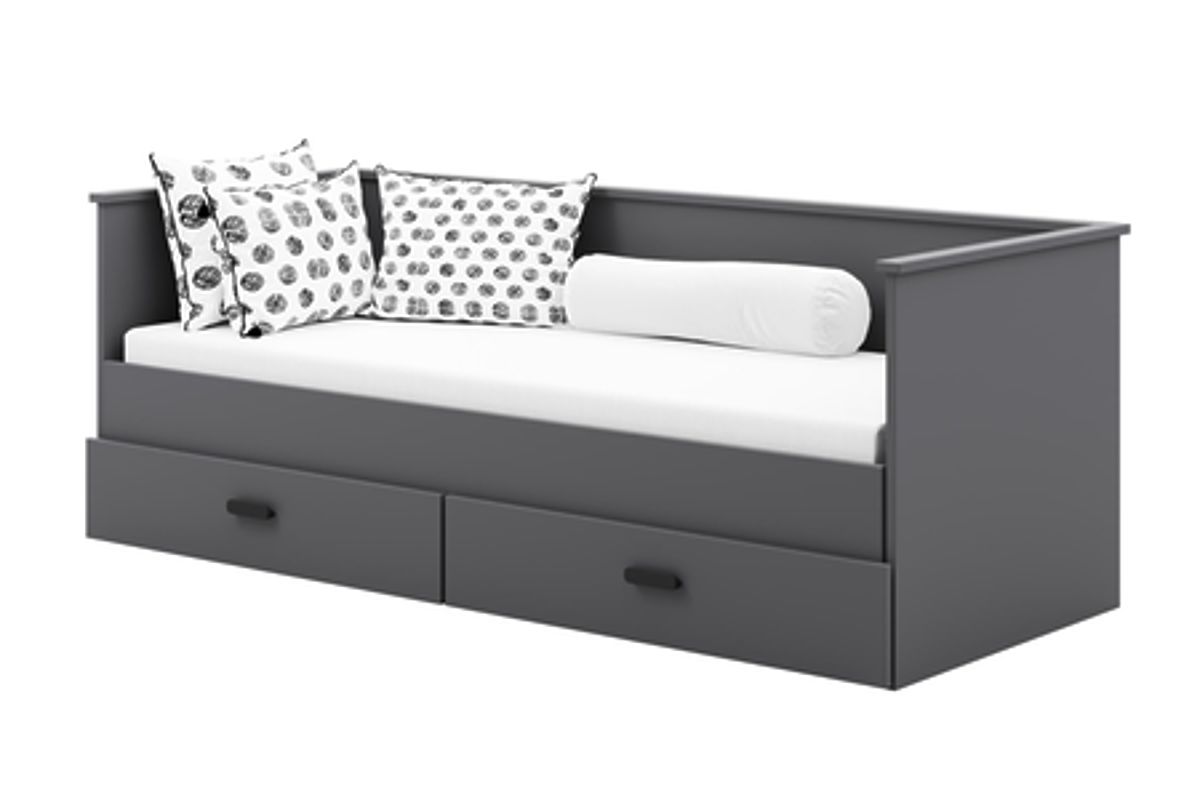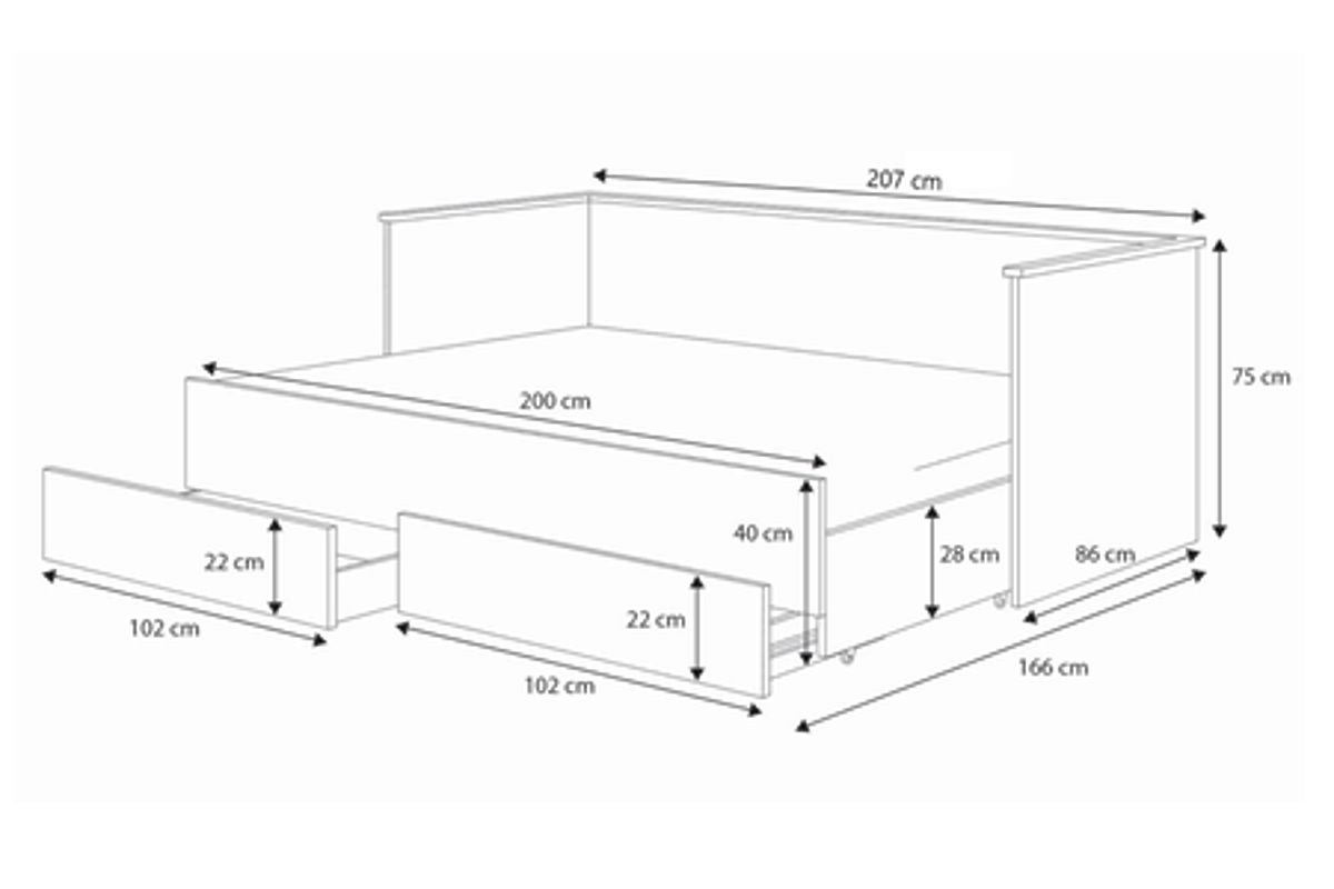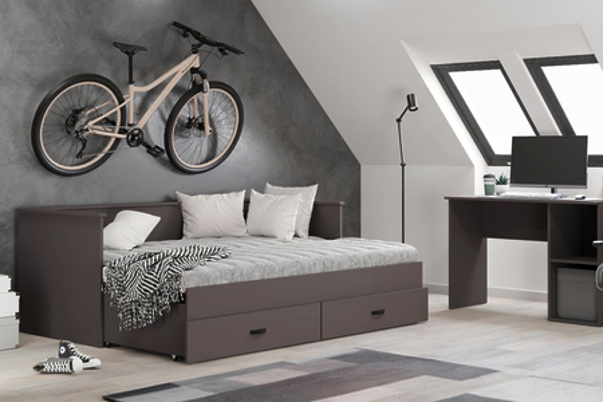Le modèle HELIOS est une solution conçue en tenant compte de la fonctionnalité et de l'esthétique. Une fois plié, le lit sert de canapé confortable, ce qui économise de l'espace et crée un espace accueillant pendant la journée. Deux tiroirs spacieux sur glissières à billes permettent de ranger le linge de lit, les vêtements ou d'autres petits objets, aidant à maintenir l'ordre dans la chambre. La construction en panneau de meuble robuste de 18 mm d'épaisseur et le cadre en lattes de bouleau garantissent stabilité, durabilité et confort d'utilisation. Cette variante permet le choix des matelas selon les préférences personnelles, afin que chacun puisse les adapter à ses besoins individuels.