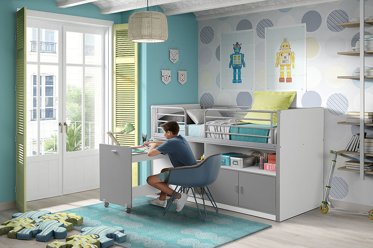 Multifunkční postel s psacím stolem od belgického výrobce, který dodává nábytek vyrobený z těch nejkvalitnějších materiálů a plně respektuje normy Evropské unie pro bezpečnost vašich dětí.