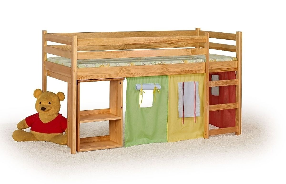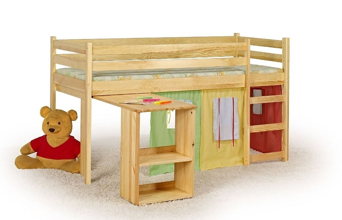 Le lit enfant Emi est peint, surélevé et doté d´un bureau. Il est devenu très populaire parmi tous les enfants de l´âge scolaire. Si vous manquez d'espace, vous pouvez relier un coin pour bureau avec l´espace pour le sommeil et la détente. Cet ensemble propose tout en un, ce qui est très pratique.