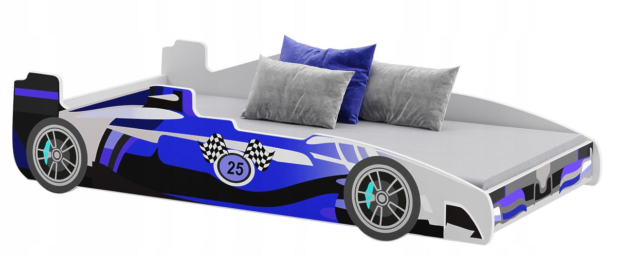 Lit enfant bleu inspiré des voitures de course, 160x80 cm, avec sommier et matelas inclus. .. plus